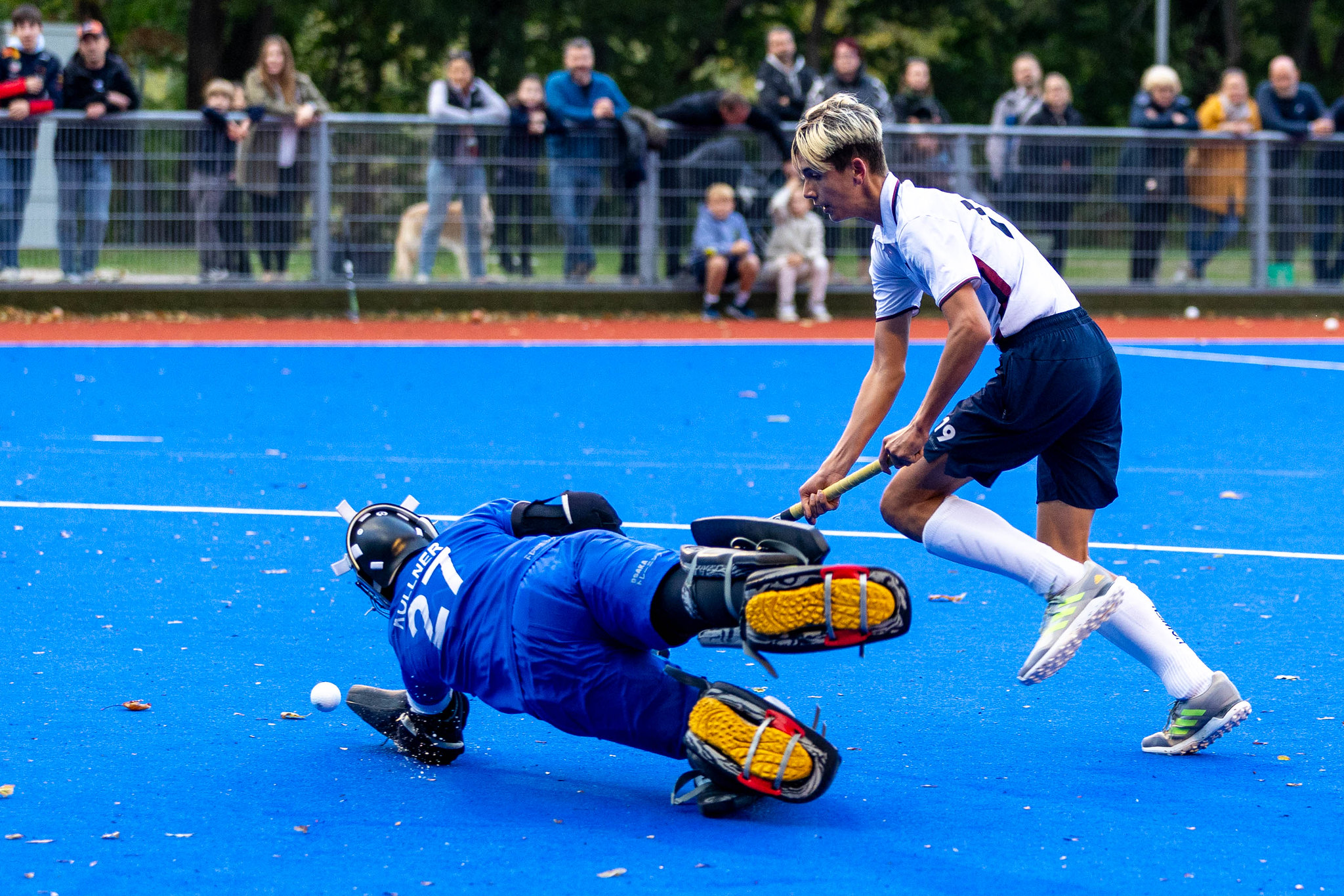 Sekunden vor der Halbzeit-Pause Heber von HC Wien in den Kreis - der Tormann ist ausgespielt, das Tor ist frei - der Halbzeitpfiff verhindert die Führung. 0:0 der Halbzeitstand.