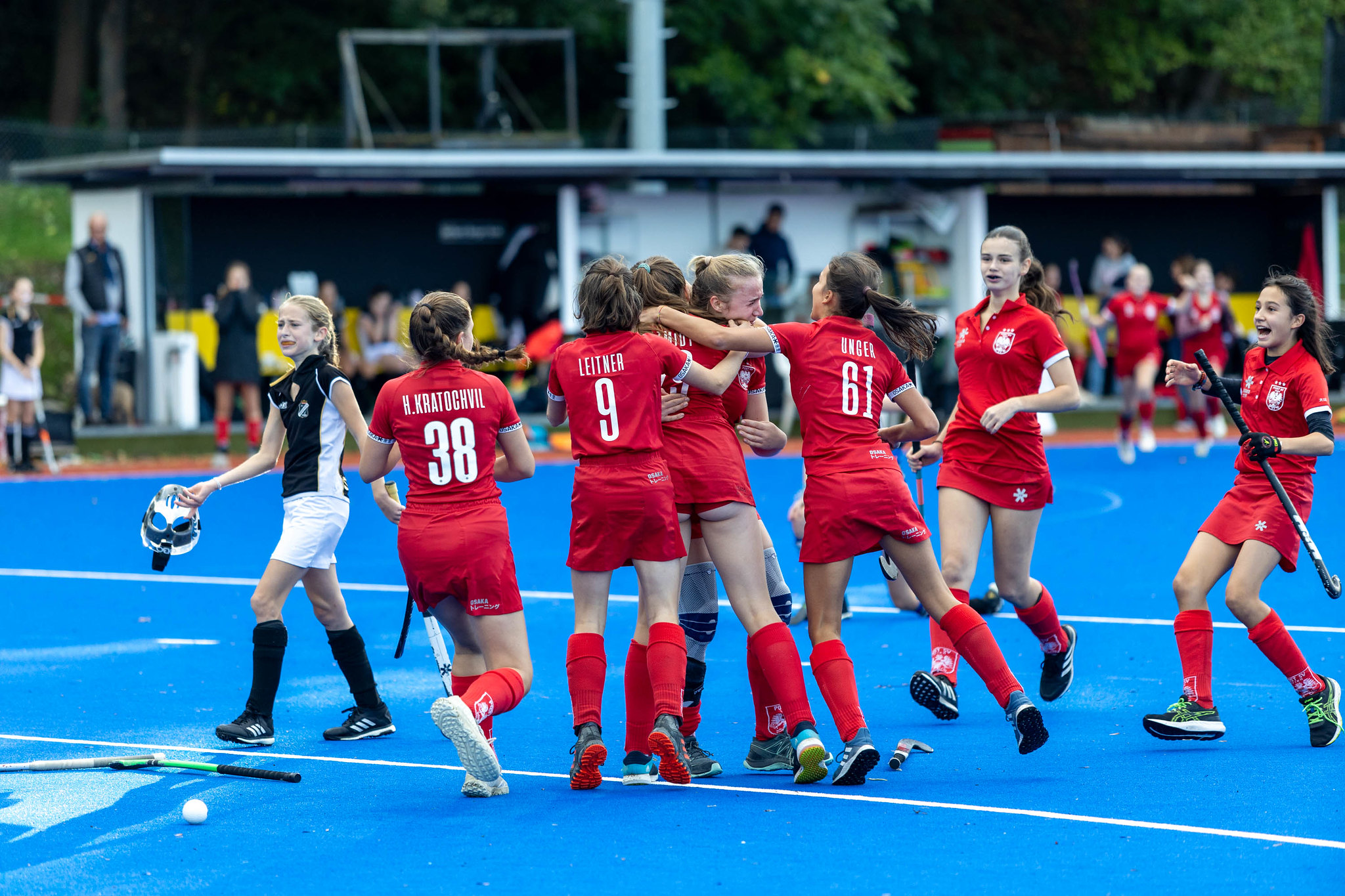 Post SV im Angriffsmodus - sie erkämpfen sich eine Strafecke und nach 5 Minuten Spielzeit in der Overtime ist das Golden Goal da. Torschützenkönigin Viktoria Szmidt verwandelt mit einem Direktschuss und holt den Meistertitel für Post SV.