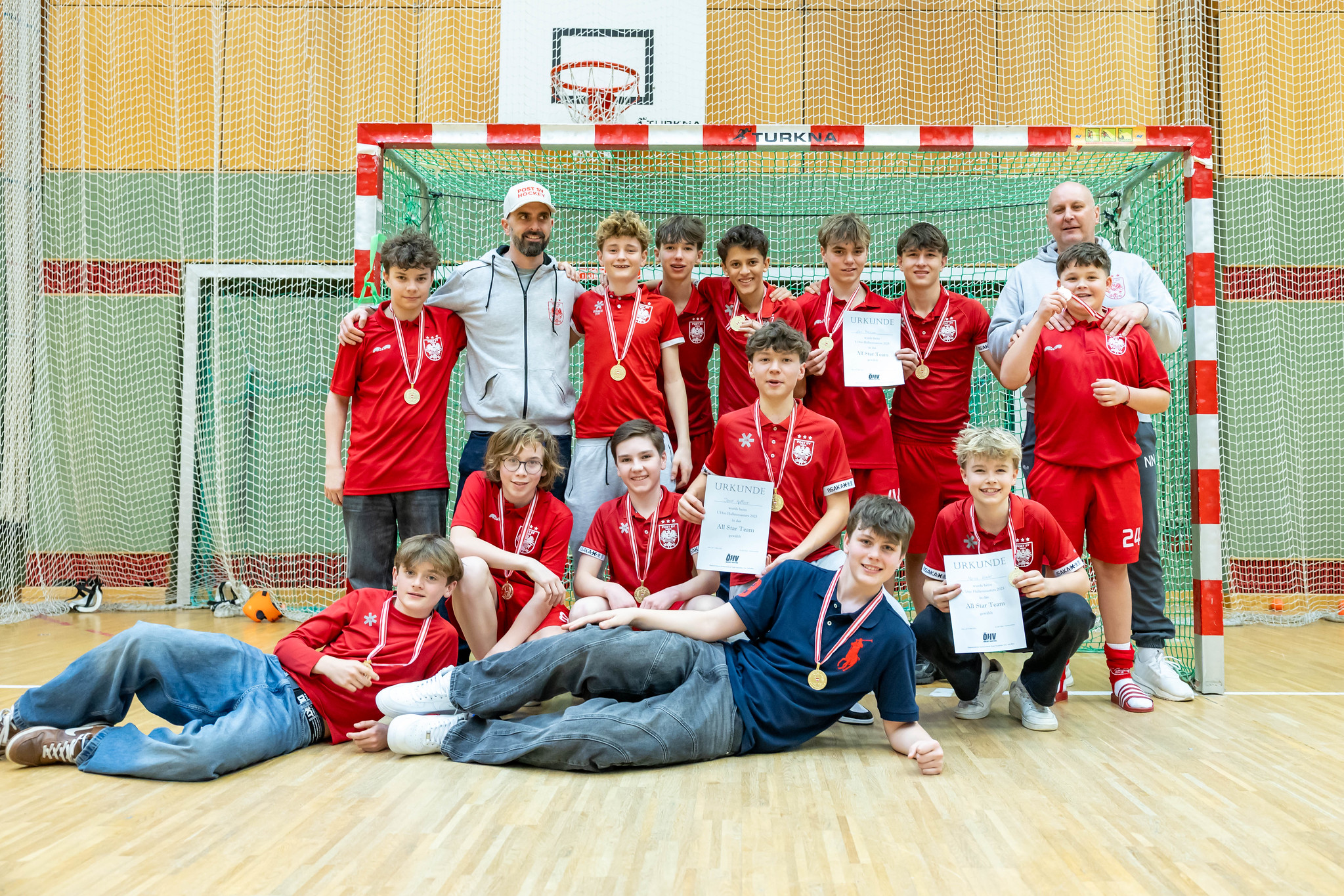 Luisa Leitner trifft, Emilia Hölbl trifft, Paulina Narovnigg trifft, Anna-Maria Wider trifft, Post SV abgewehrt, WAC abgewehrt, Emilia Hölbl trifft, Luisa Leitner trifft, Anna-Maria Wider trifft, Paulina Narovnigg trifft, Clara Perlinger-Ringler trifft, Post SV vergibt und damit ist WAC Meister in der U14 weiblich.