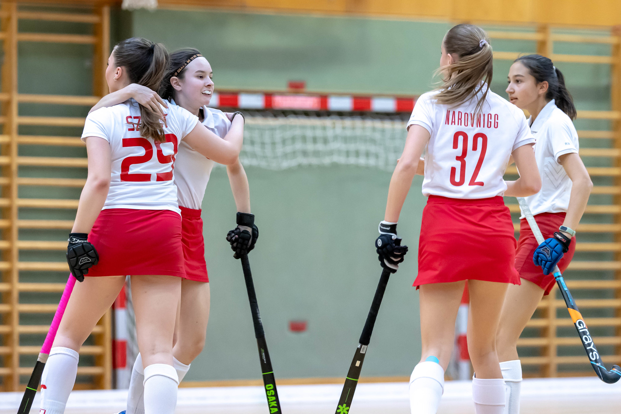 Dann ist neuerlich SV Arminen am Zug - Valerie Lorenz kommt in den Kreis und bringt den Ball einfach mit der Rückhand auf das Tor und der Ball geht über die Torlinie. 5:2 der neue Spielstand. Dann ist es Victoria Marek, die sich läuferisch gut im gegnerischen Kreis durchsetzen kann und ihr Schuss landet ebenfalls im Tor. Das ist das 6:2 für SV Arminen. AHTC bleibt weiter dran und Alma Frey macht das 6:3. Bronze sichert sich SV Arminen.