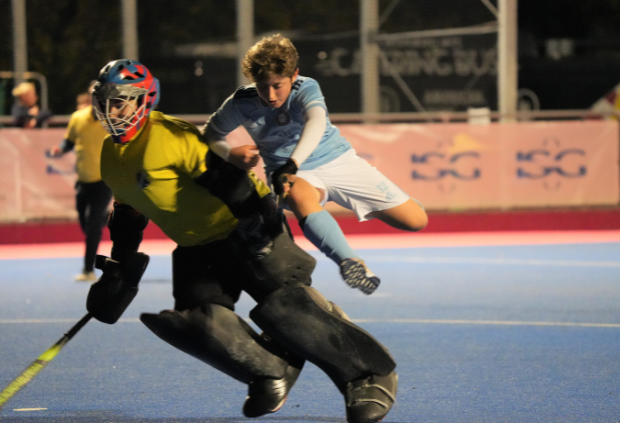 Im ersten Halbfinal-Spiel der U16-Burschen geht der HC Wien rasch in Führung - nach 10 Minuten steht es bereits 2:0. Verantwortlich für beide Treffer Maximilian Meisel. Mit einem RH-Schrubber erzielt er den ersten Treffer und per argentinischer Rückhand überwindet er den Tormann und zirkelt den Ball hoch in die lange Ecke.