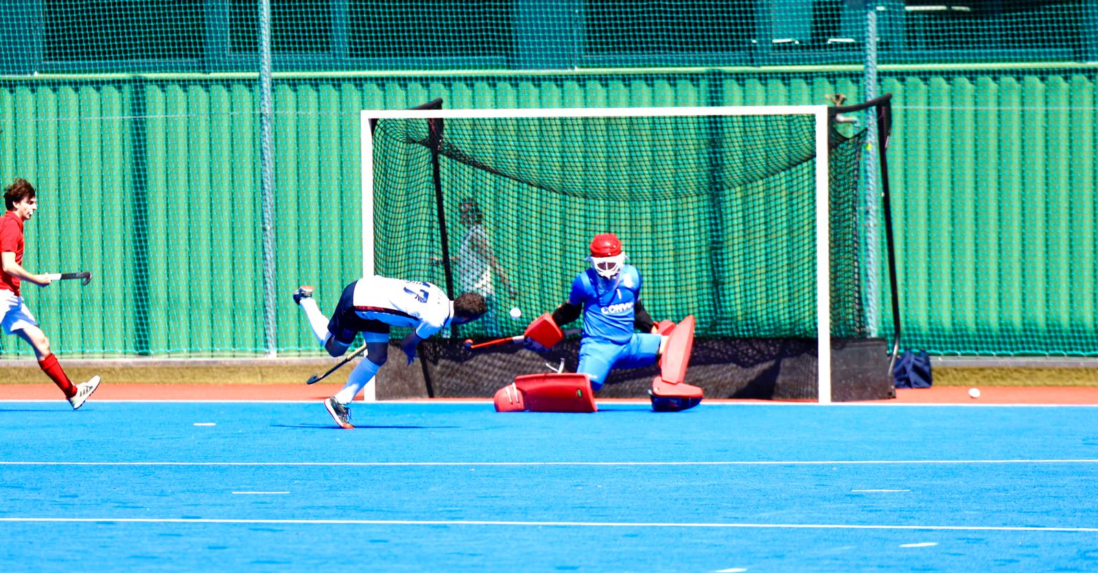 Der AHTC prüft bei der nächsten Aktion Torhüter Christoph Sandbichler, aber der steht richtig. Erste Strafecke für AHTC in der 35. Minute, aber der Herausläufer lenkt den Ball über die Latte.