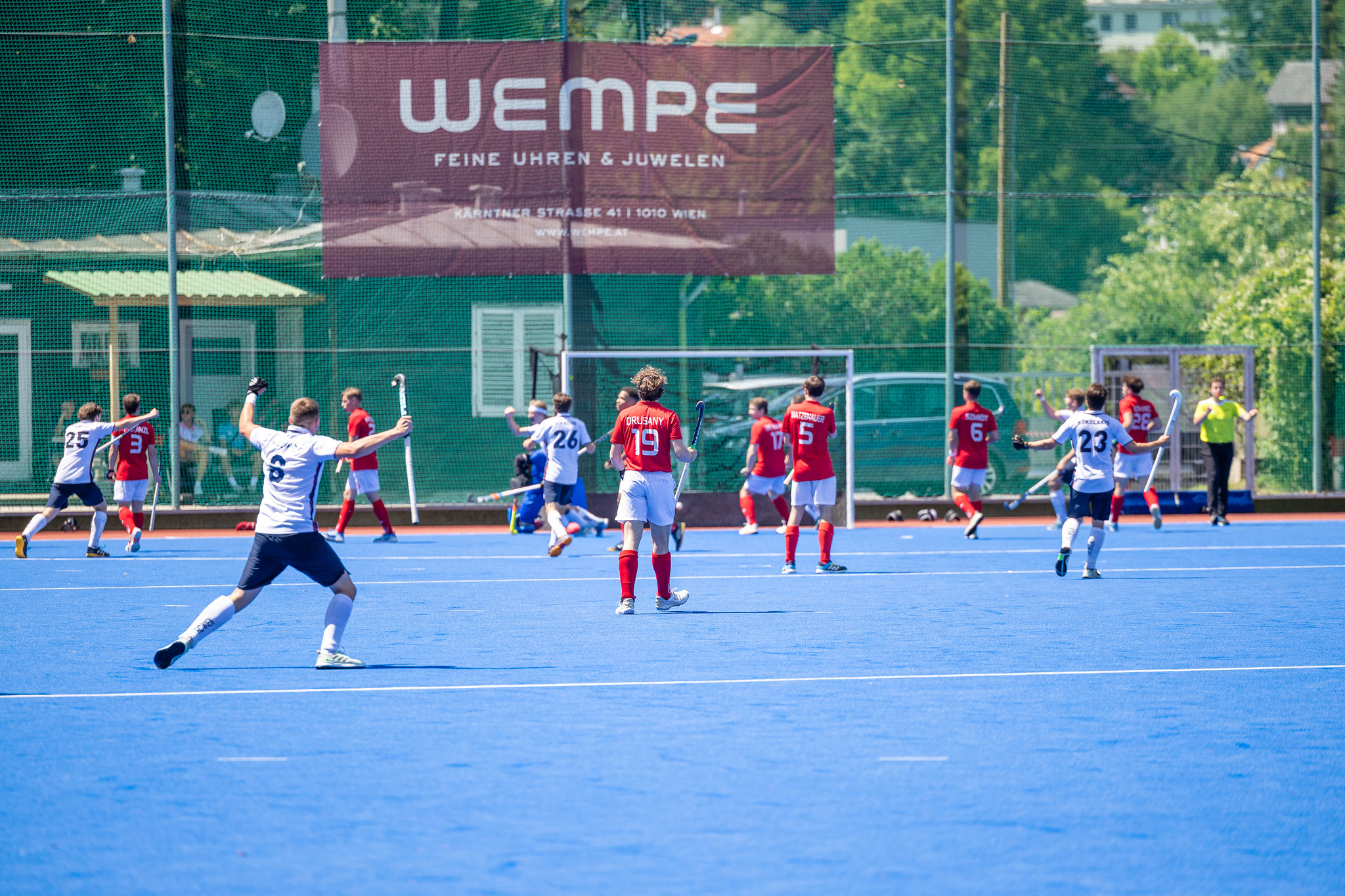 Noch 30 Minuten und die Teilnahme am Finale ist geklärt. SV Arminen hat Anstoß und mit einem Ball in den Kreis von Max Trnka holen die Arminen-Herren die Strafecke. Mehrfache Wiederholung und am Ende klärt Lukas Schiesser. Aus der nächsten Strafecke entsteht das 3:0 durch Florian Steyrer.