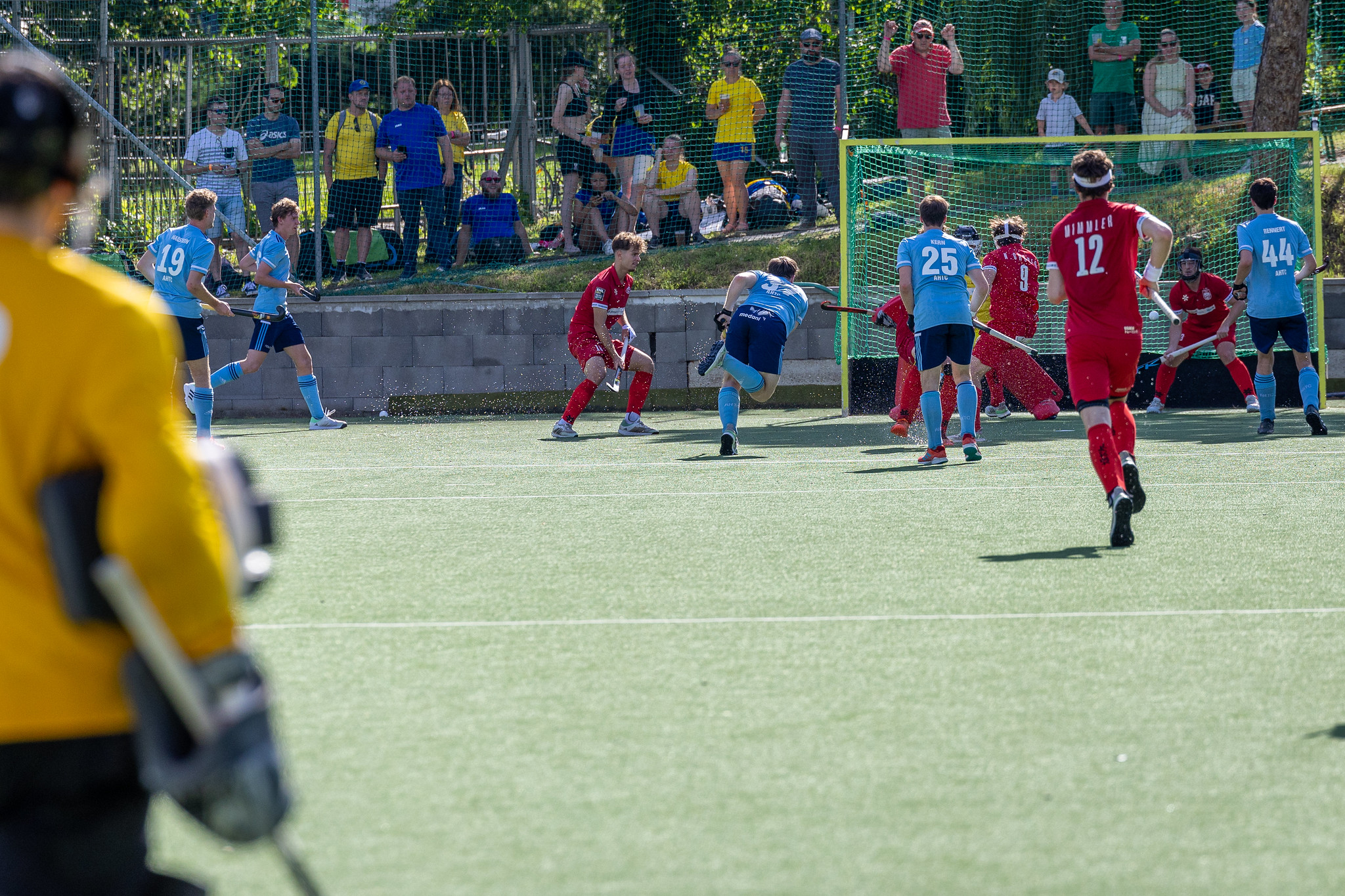 Noch 4 Minuten auf der Uhr - Strafecke für Post SV - aus dieser Eckenserie fällt letztendlich das 2:3 durch Maximilian Scholz. Post SV holt den Tormann vom Spielfeld und versucht in den verbleibenden 2 Minuten das rettende Unentschieden zu erreichen. Das gelingt nicht und es kommt zum Penalty Shoot-Out um den Finaleinzug.