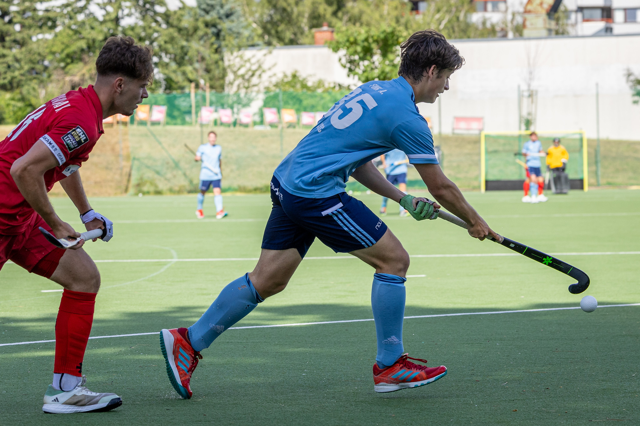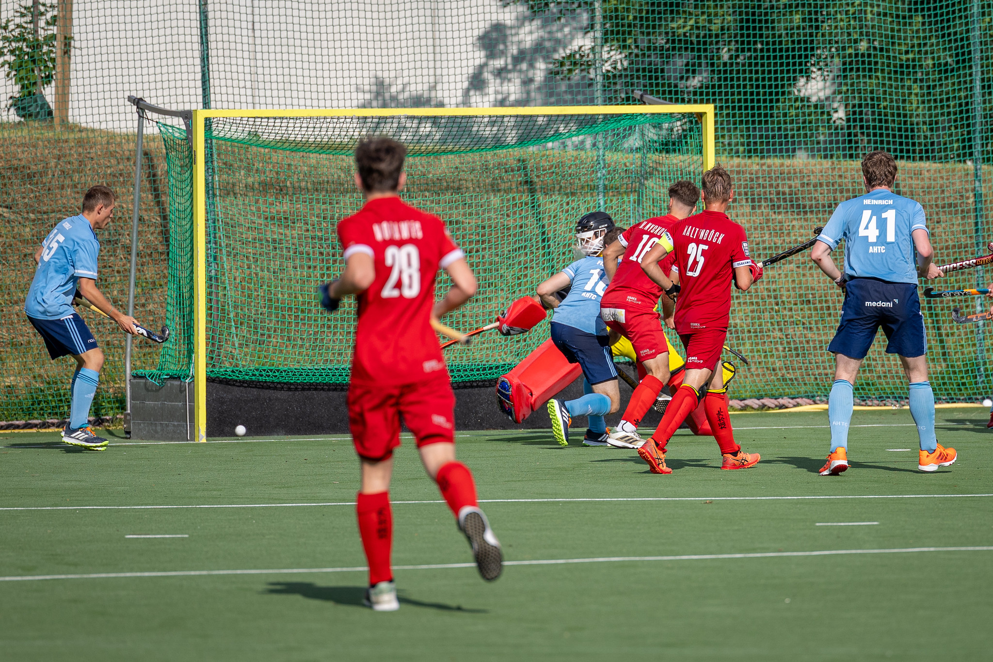 Beide Mannschaften gehen von Beginn an ein gutes Tempo und die Spielsituationen wechseln häufig. 15 Minuten bleiben torlos. Post SV läuft dieses Wochenende wieder mit Bohdan Kovalenko auf, der im Frühjahr zurück nach Kroatien gegangen ist. Die erste Strafecke in diesem Spiel bekommt AHTC in der 17. Minute zugesprochen. Erik Schiesser trifft und bringt AHTC 1:0 in Führung. Auch die nächste Großchance, kurze Zeit später, verbucht AHTC für sich.