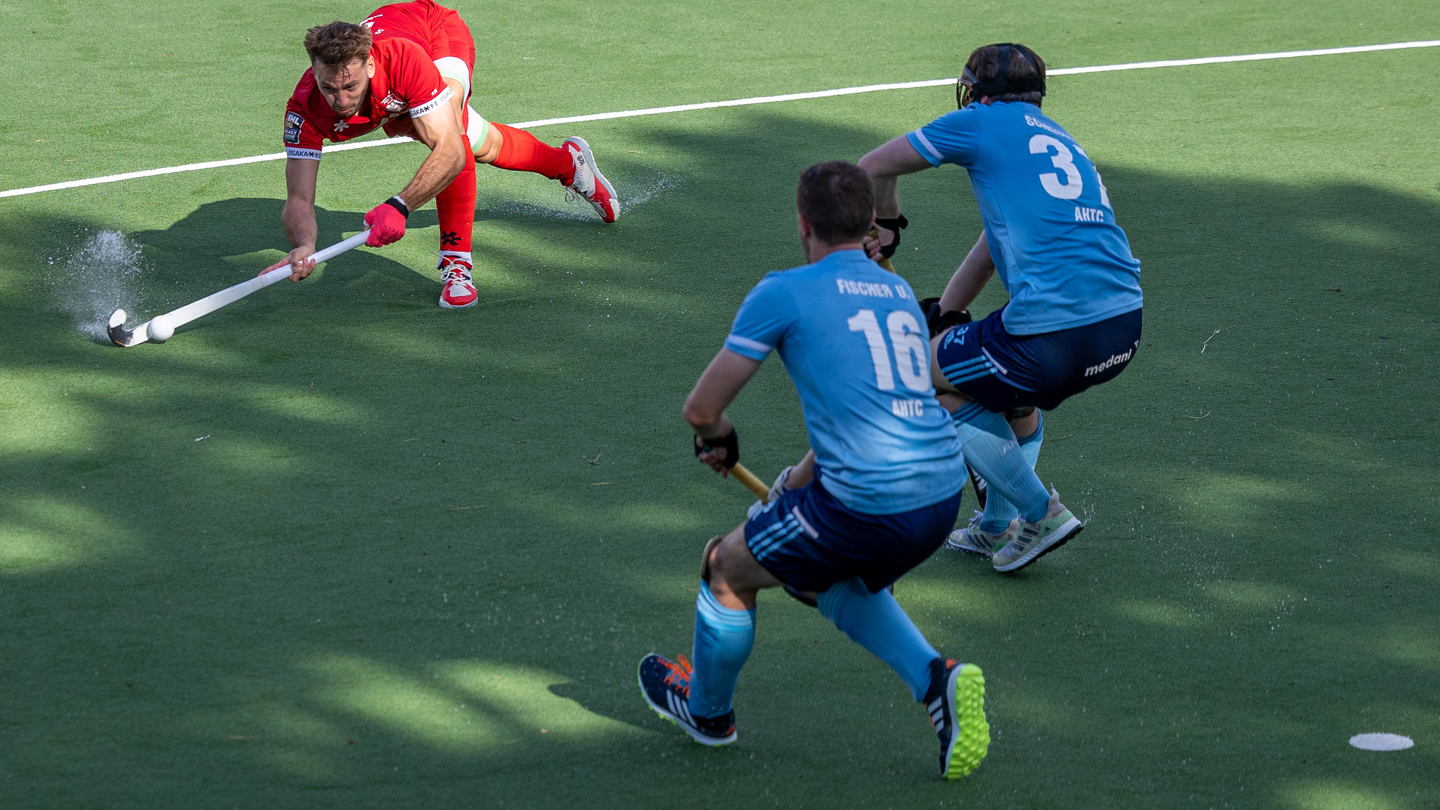 Bei der Strafecke in der 41. Minute für AHTC wird eine starke Kombination gespielt und Hannes-Hermann Heßler platziert den Ball in die lange Ecke - Tor zur 2:1-Führung. Post SV kommt zu zwei Strafecken in Folge - beide Male pariert Laurenzo Rizzi perfekt.