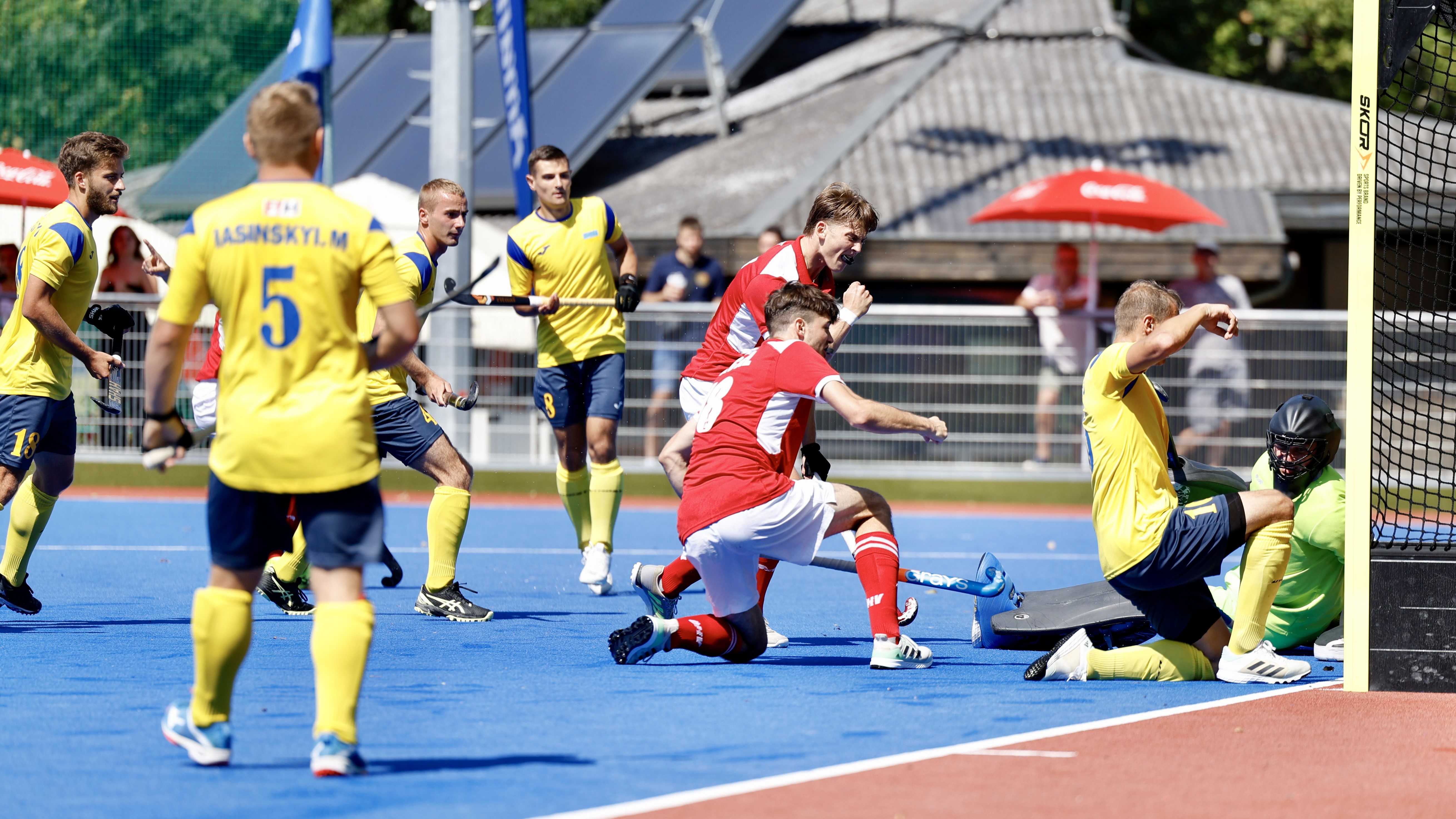 In der 47. Minute kombinieren Leon Thörnblom und Fülöp Losonci - ein scharfer Ball in den Kreis und der Stecher von Losonci landet an der Torstange. Zwei Minuten später spielt sich Arthur Kucera in den ukrainischen Kreis und holt die nächste Strafecke. Doch heute funktionieren diese in der Basis-Ausführung nicht ideal.