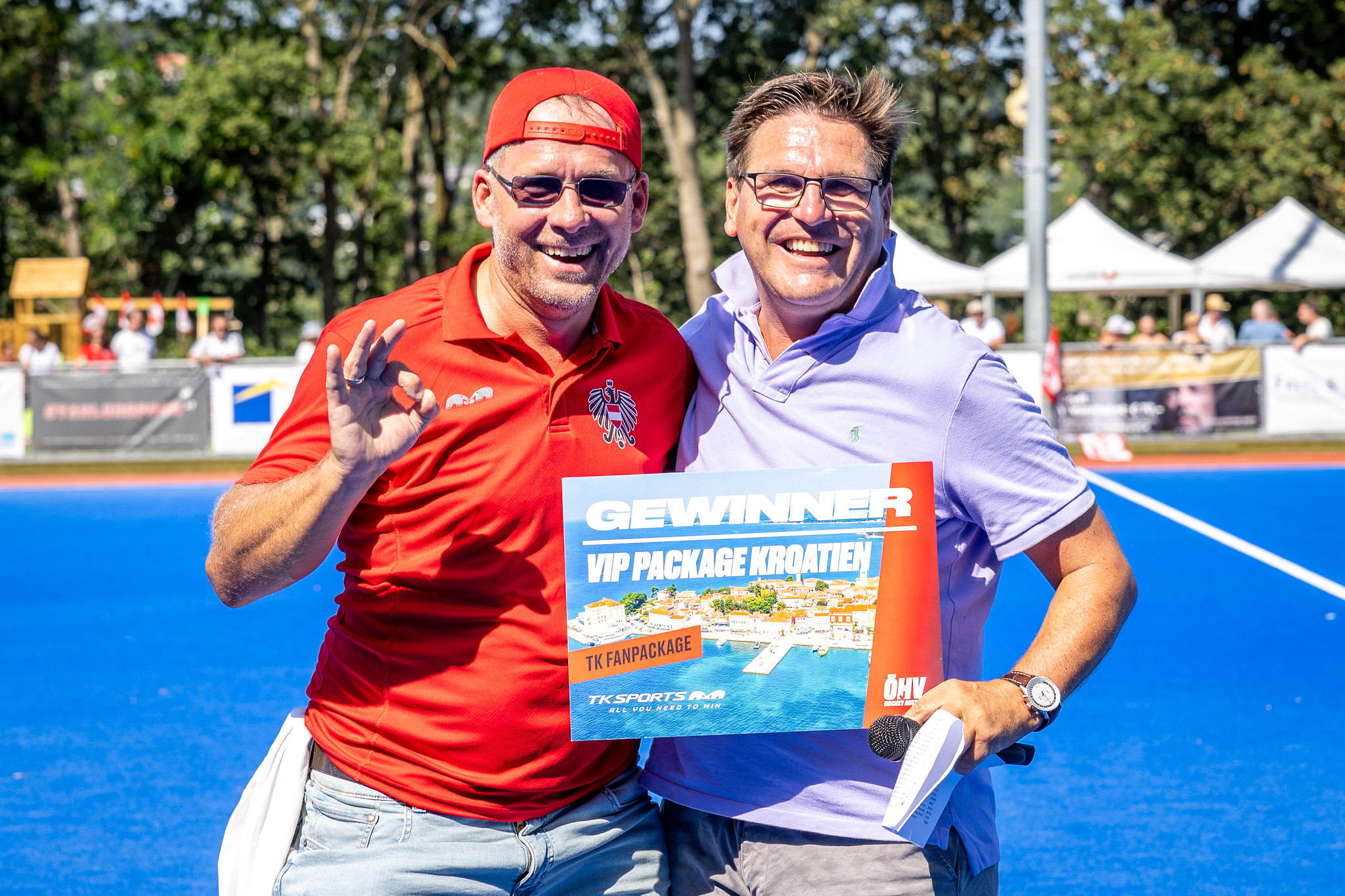 Bei der Auslosung wurde zunächst ein anderer Gewinner für den Hauptpreis gezogen. Die Bedingung war aber die persönliche Anwesenheit am Platz. Und so wurde der nächste Name auf der Gewinner-Liste vorgelesen und man konnte dem "zweiten" Sieger eindeutig die Freude über das VIP-Package anmerken!