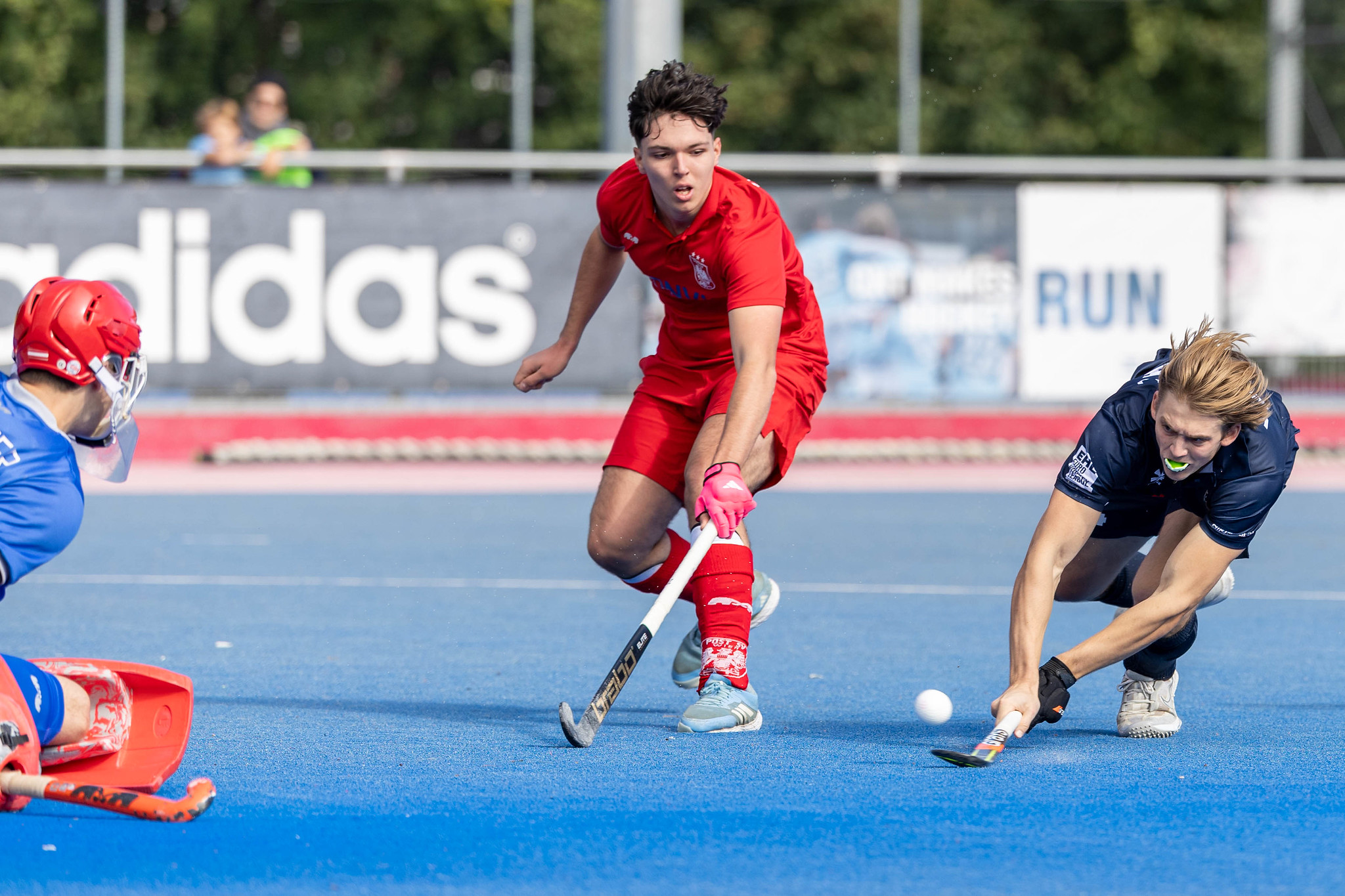 Es dauert einige Zeit bis HC Wien in das Spiel findet. Mehr oder weniger aus dem Nichts ist es dann Josef Winkler, der im Schusskreis den Ball an das Bein eines Verteidigers lupft und dafür gibt es Strafecke für HC Wien. Die Eckenserie ist am Ende von Erfolg gekrönt: Jakob Kastner im Tor kann nur kurz abwehren und im Nachschuss ist Joan Marimon erfolgreich. Er übernimmt den Ball direkt und trifft in die Kreuzecke. Mit 1:0 endet das erste Viertel.
