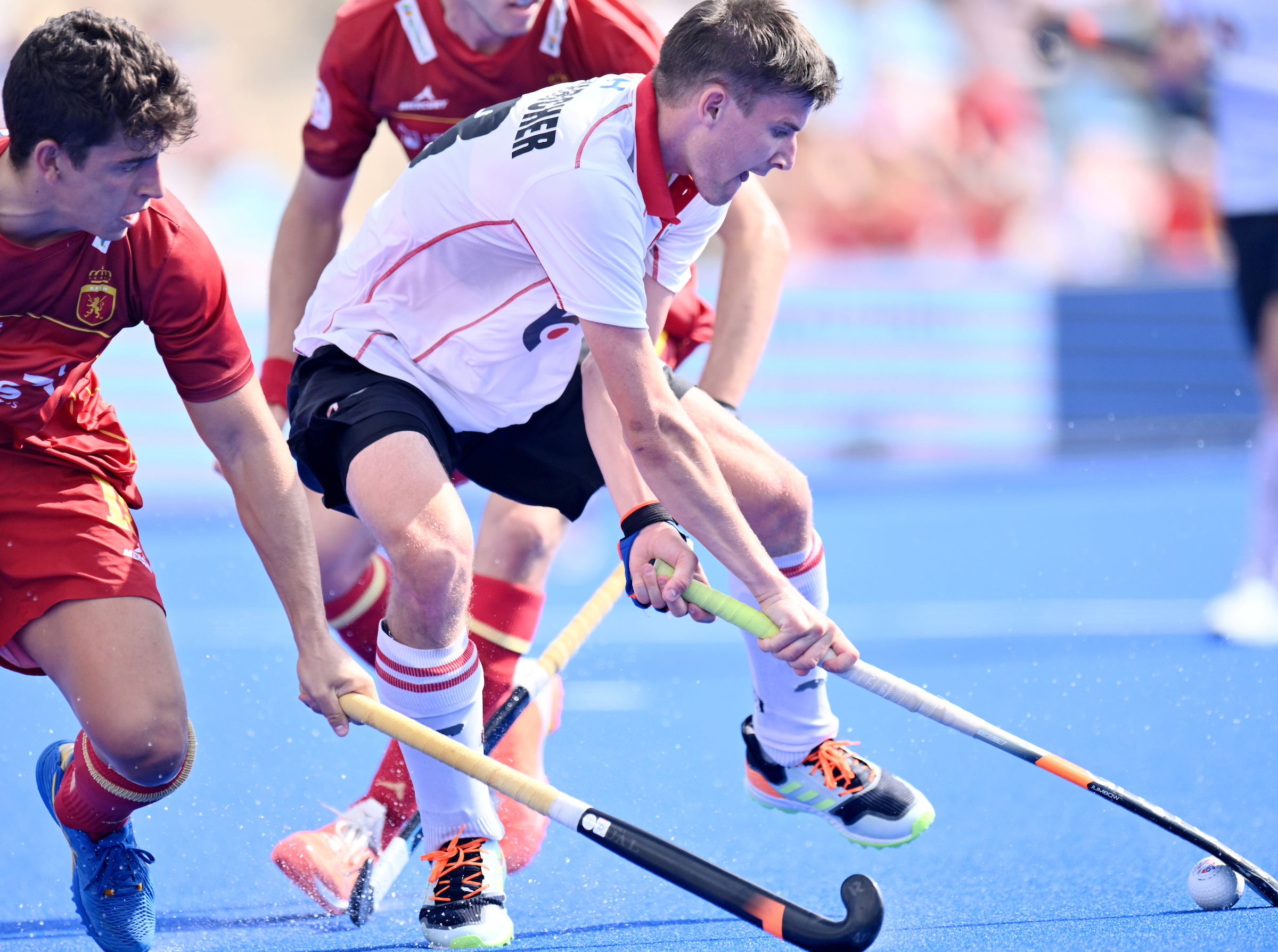 In der 26. Minute kann Fabian Unterkircher die nächste spanische Strafecke nur mehr mit dem Körper abwehren - der dafür verhängte 7m wird von Marc Miralles eiskalt verwandelt. Damit erhöht Spanien den Spielstand auf 2:0 und eine Minute später verwertet Rafael Vilallonga einen Nachschuss zum 3:0 Halbzeitstand.