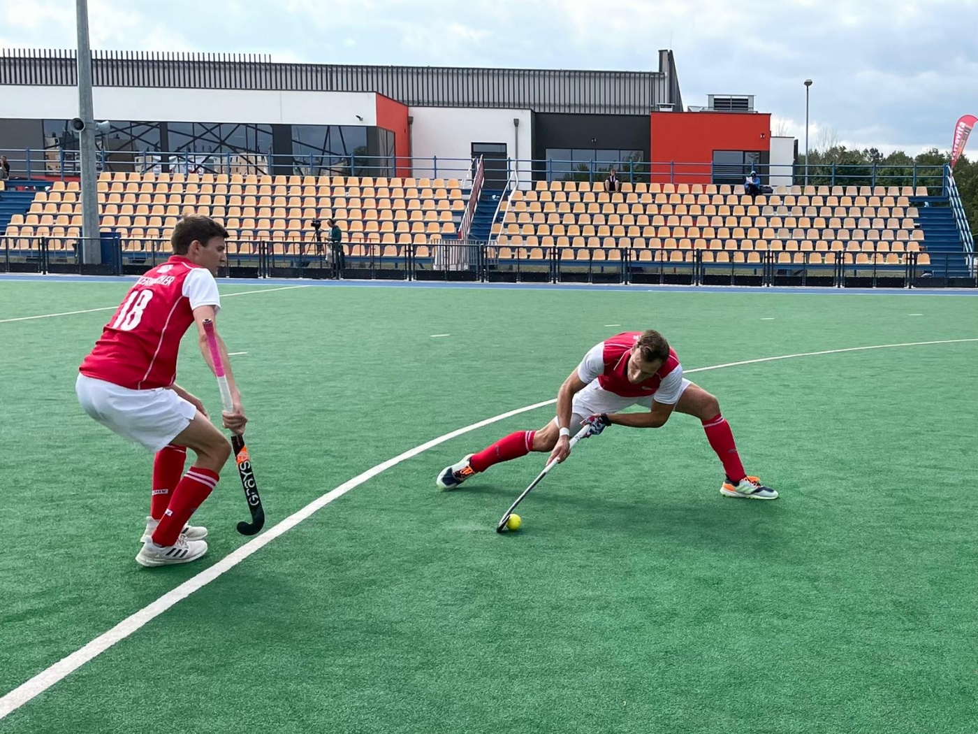 5 Minuten vor der Halbzeit: R. Bele holt die nächste Ecke für Österreich, wieder scheint der Platz schuld am schlechten Eckenstopp. Knapp vor der Halbzeit noch einmal Eckenalarm - unnötiger Rempler der österreichischen Verteidigung wird mit Strafecke für die Ukraine geahndet, doch Szymczyk im Tor der Österreicher wehrt ab.