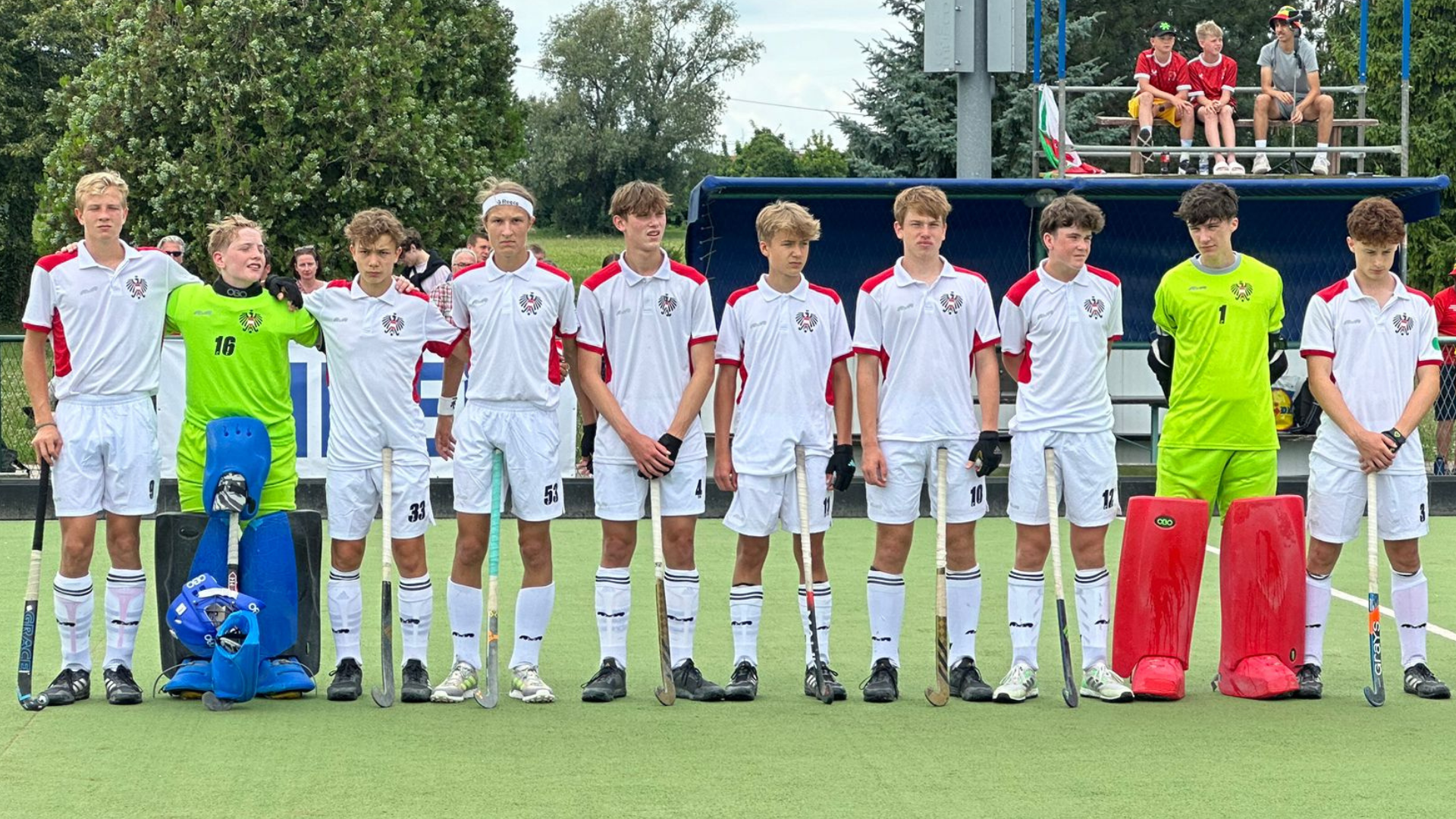 Die Österreicher setzen gleich in den ersten beiden Minuten ein deutliches Ausrufezeichen und knallen zwei Mal kurz hintereinander den Ball direkt unter die Latte. Ein Auftakt nach Maß und es geht in einer ähnlichen Tonart weiter. Die österreichischen Burschen sind körperlich, technisch und taktisch einfach besser als der Gegner und spielen außerdem gut zusammen.