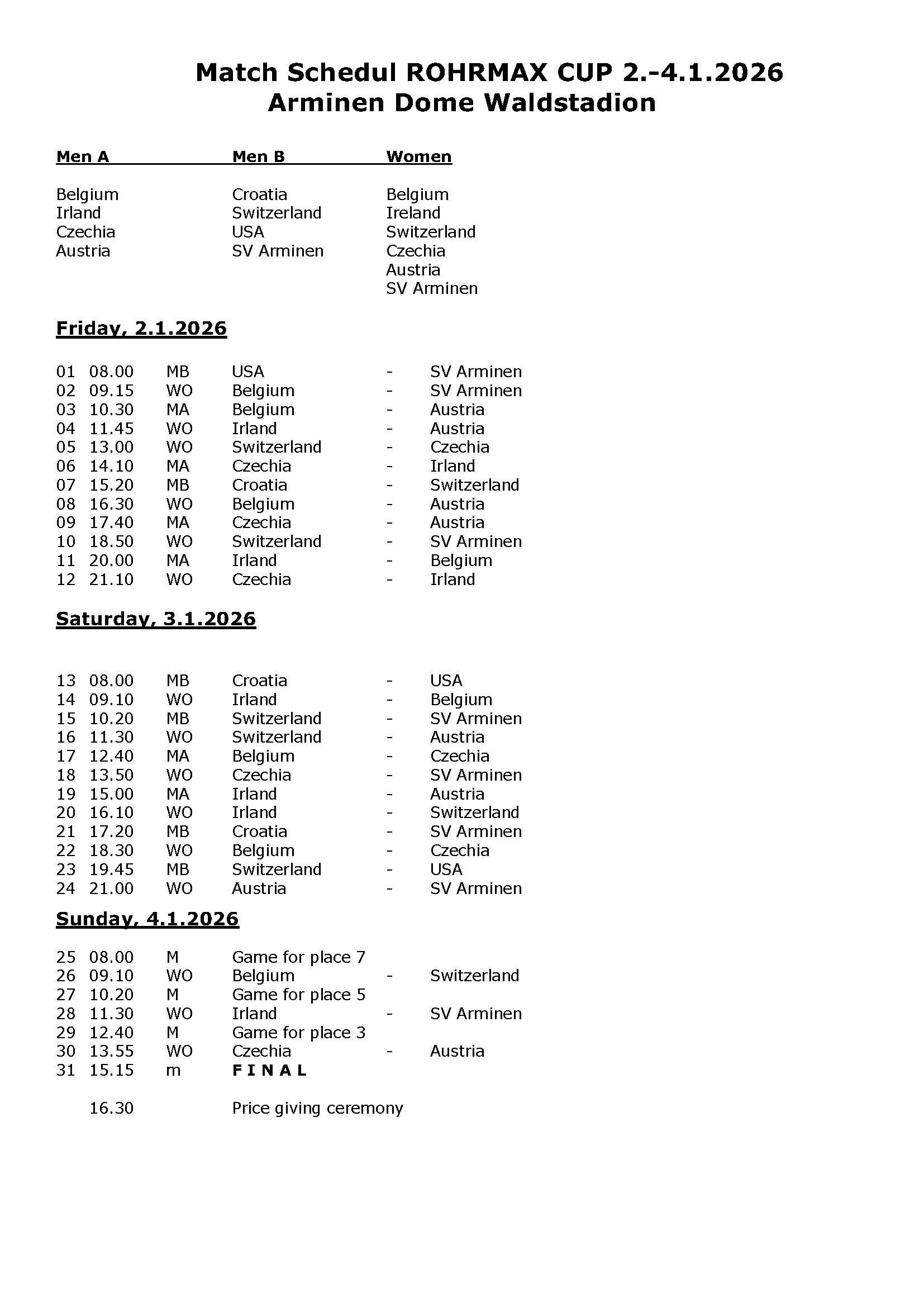 Kaum ist das neue Jahr angebrochen, öffnet der Arminen Dome im Waldstadion seine Pforten. Am 2. Jänner 2026 erfolgt um 08:00 Uhr der Anpfiff zum ersten Spiel beim 44. ROHRMAX-Cup.