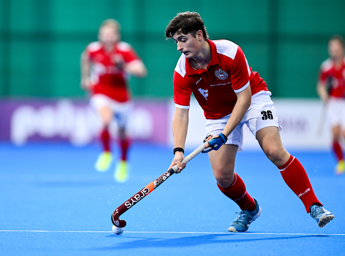 Österreich kommt immer wieder zu Bällen im gegnerischen Viertel, aber der Versuch, eine gegnerische Strafecke zu erspielen durch ein Vergehen der Schotten gelingt nicht. Schottland mit sehr hohem Pressing, aber Österreich versteht es immer wieder diese Situationen gut zu managen. Im schnellen Umschaltspiel der Red Capricorns liegt eine gewisse Gefahr, dass dies auf jeder Position auch wirklich funktioniert.