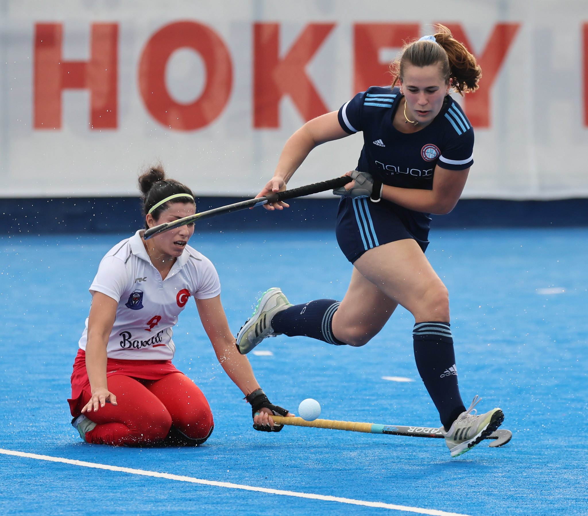 In der 2. Halbzeit pressen die Türkinnen und spielen mit 4 Stürmerinnen. Doch auch das 3. Quartal beherrschen die Blau Weissen und erspielen sich gute Konterchancen. Eine dieser Gelegenheiten nützt Hannah Szladits zur verdienten 2:0 Führung. Im letzten Viertel summieren sich plötzlich unnötige Fehler beim Ab und Aufbauspiel der Blau Weissen und die Türkinnen kommen mit weiten Hebebällen immer wieder gefährlich in den Kreis der Wienerinnen.