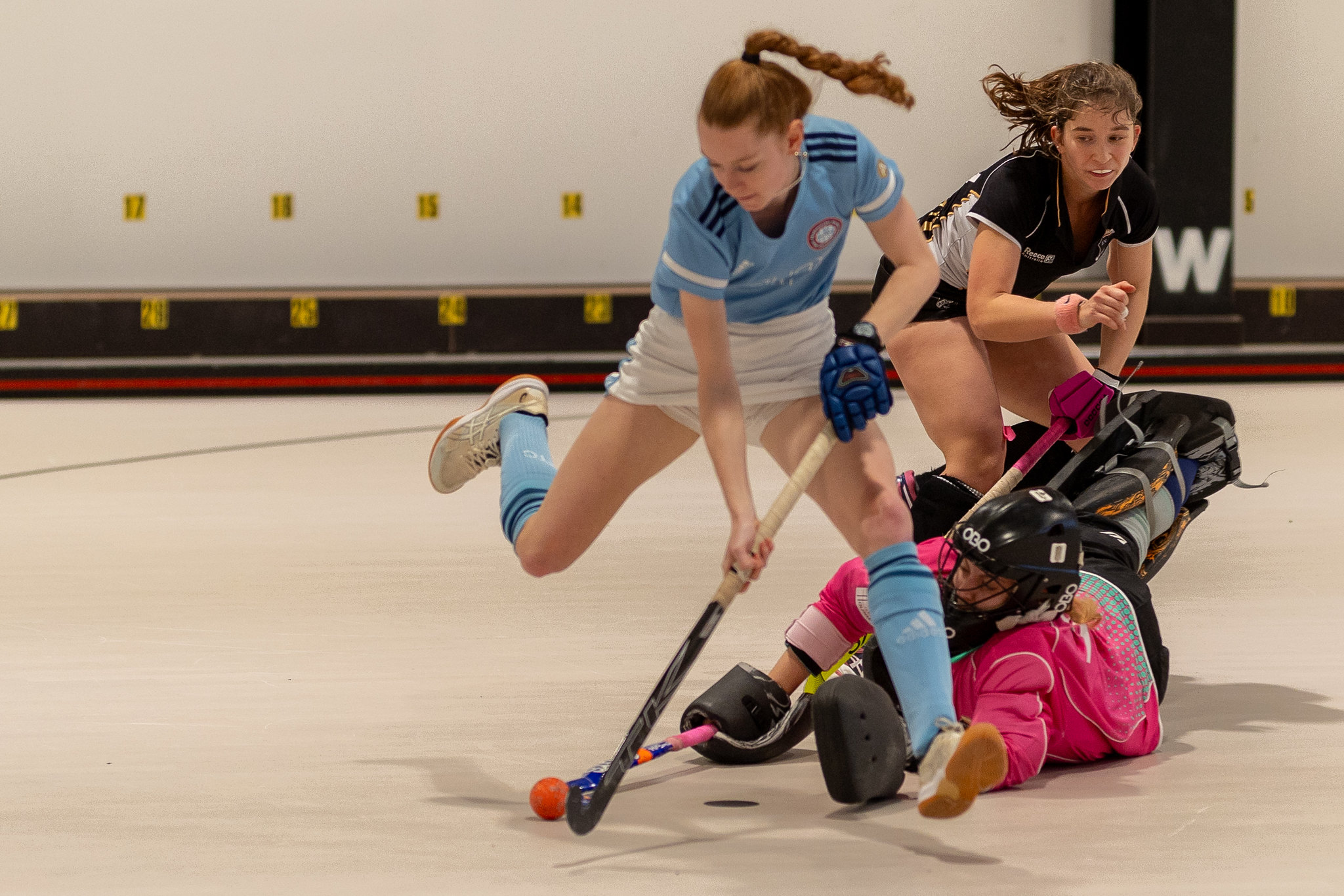 Helene Herzog legt im letzten Viertel nochmals nach - sie bringt den Ball nach schöner Vorarbeit von Anja Haselsteiner zum 1:3 im Tor unter.