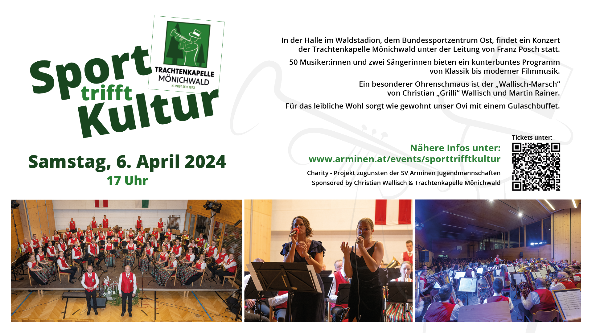 Ein kunterbuntes Programm von Klassik bis moderner Filmmusik bietet die Trachtenkapelle Mönichwald mit unserem Physio Christian "Grilli" Wallisch am 06. April 2024 um 17 Uhr im Waldstadion.