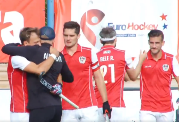 Uher entscheidet das Spiel 5 Sekunden vor Schluss per Strafecke - AUT siegt 2:1.
