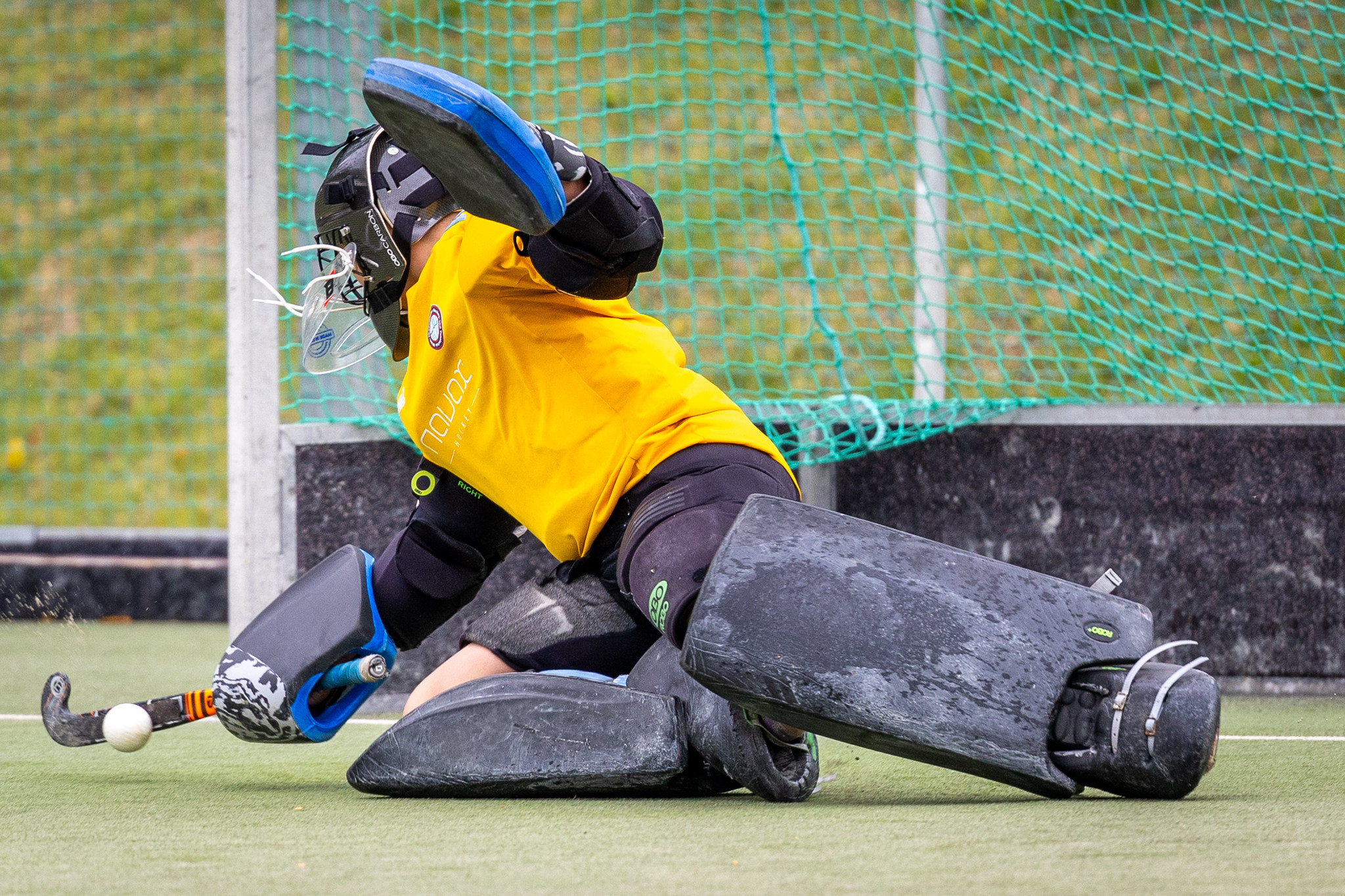 Gefährlicher Querpass am eigenen Schusskreis kostet Post SV beinahe die Führung - aber Glück gehabt, die Chance kann von AHTC nicht genutzt werden.