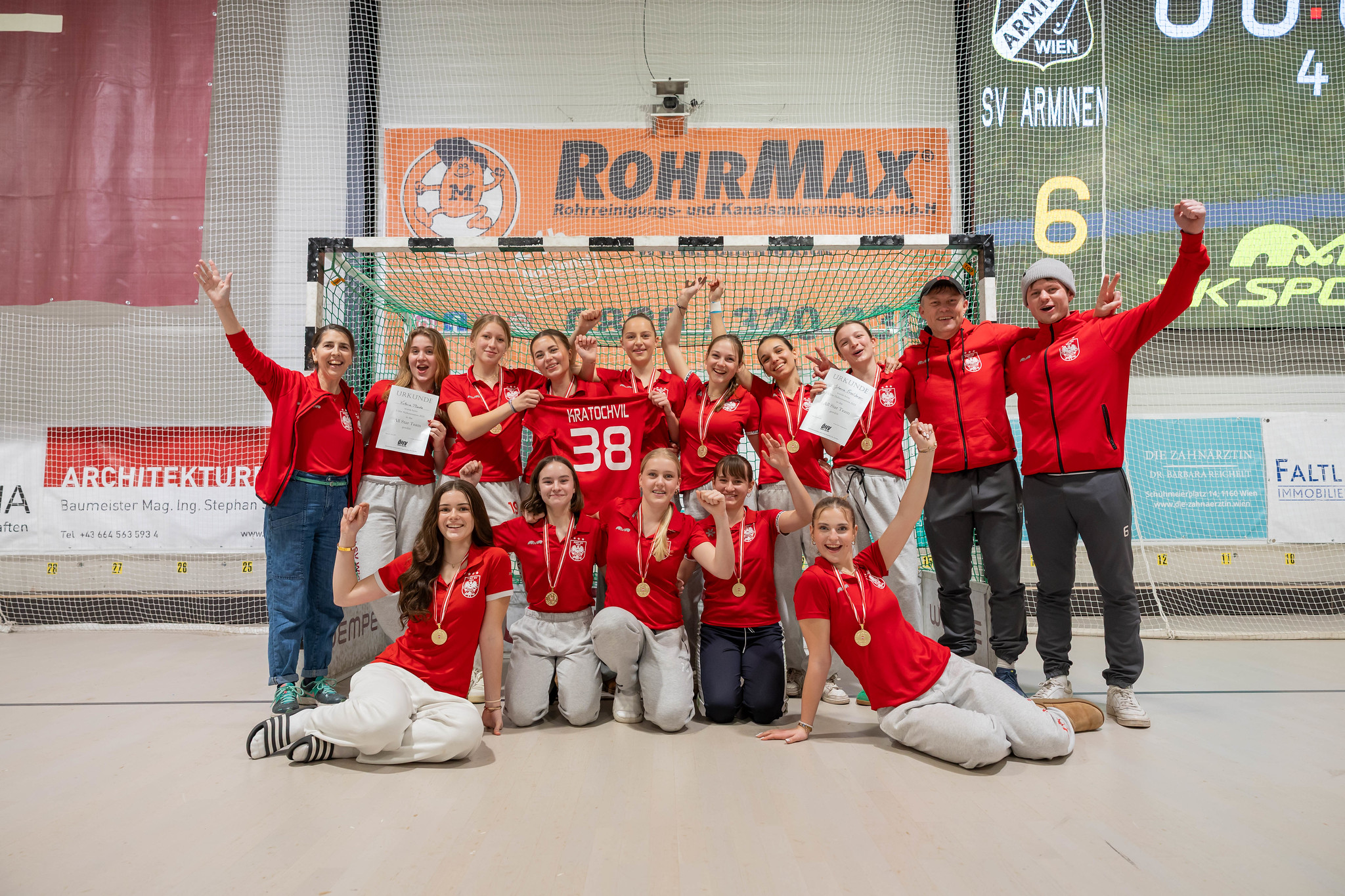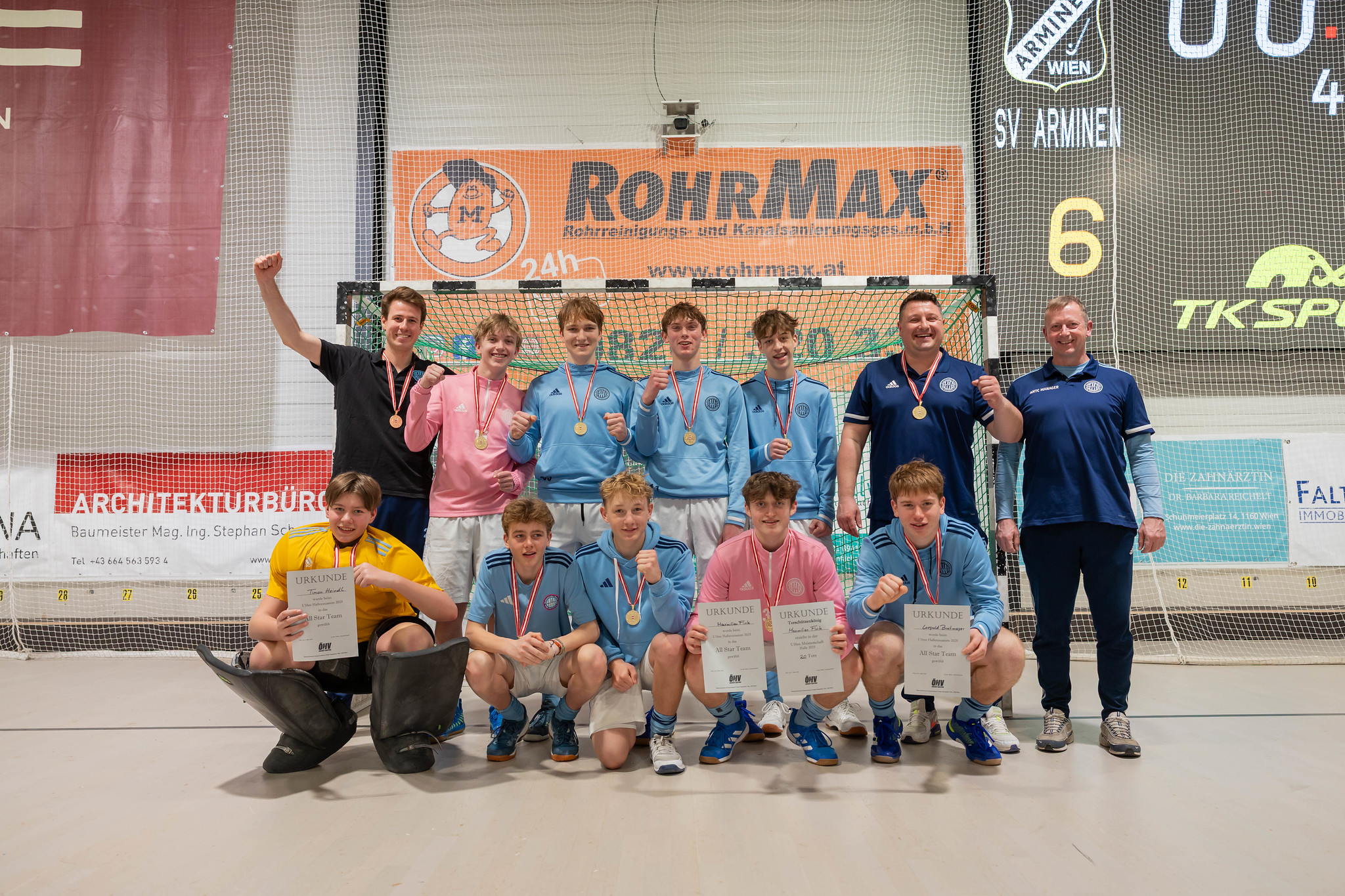 SV Arminen startet. Valentin Hagen trifft. Xaver Spiegelfeld wehrt ab. Konstantin Jeremic trifft. Maximilian Fink trifft. SV Arminen vergibt. Paul Baier im Nachsetzen erfolgreich. Leopold Breitmeyer trifft und auch Valentin Hagen trifft gerade noch in der Zeit. Maximilian Fink trifft. Konstantin Jeremic trifft. Paul Baier trifft. Oskar Rathkolb trifft. Valentin Hagen wird gefoult - 7m und der Ball landet im Tor. Leopold Breitmeyer trifft. SV Arminen vergibt. Maximilian Fink wird gefoult - 7m und der Ball von Paul Baier rutscht unter den Schienen in das Tor.