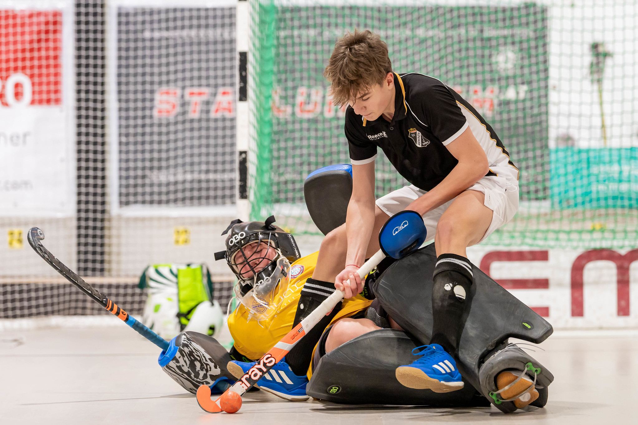 Konstantin Jeremic bringt SV Arminen wieder näher ran - nur mehr 4:5 und dann holt Oskar Rathkolb in der 29. Minute eine Strafecke für SV Arminen. Abgeber auf Tobais Terler und er sorgt für einen Lattenpendler bei dem der Ball aber nicht über die Linie geht.