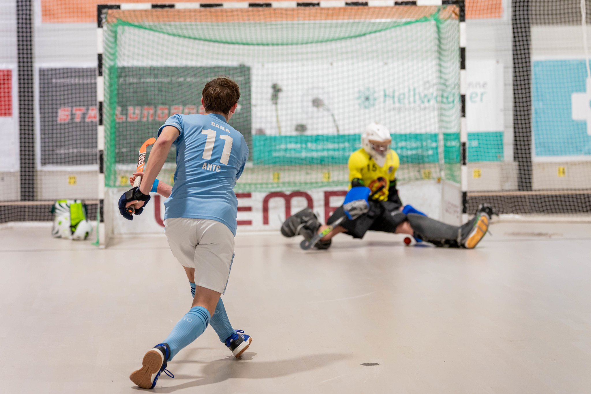 Hoher Ball bei der Fußabwehr des Arminen-Goalie und aus der Strafecke wird ein 7m. Paul Baier übernimmt die Verantwortung - flach, scharf und platziert und es steht 6:4 für den AHTC. Noch 4 Minuten und Leopold Breitmeyer freut sich zu früh - sein Tor zählt nicht, weil der Ball hoch gegeben wird.