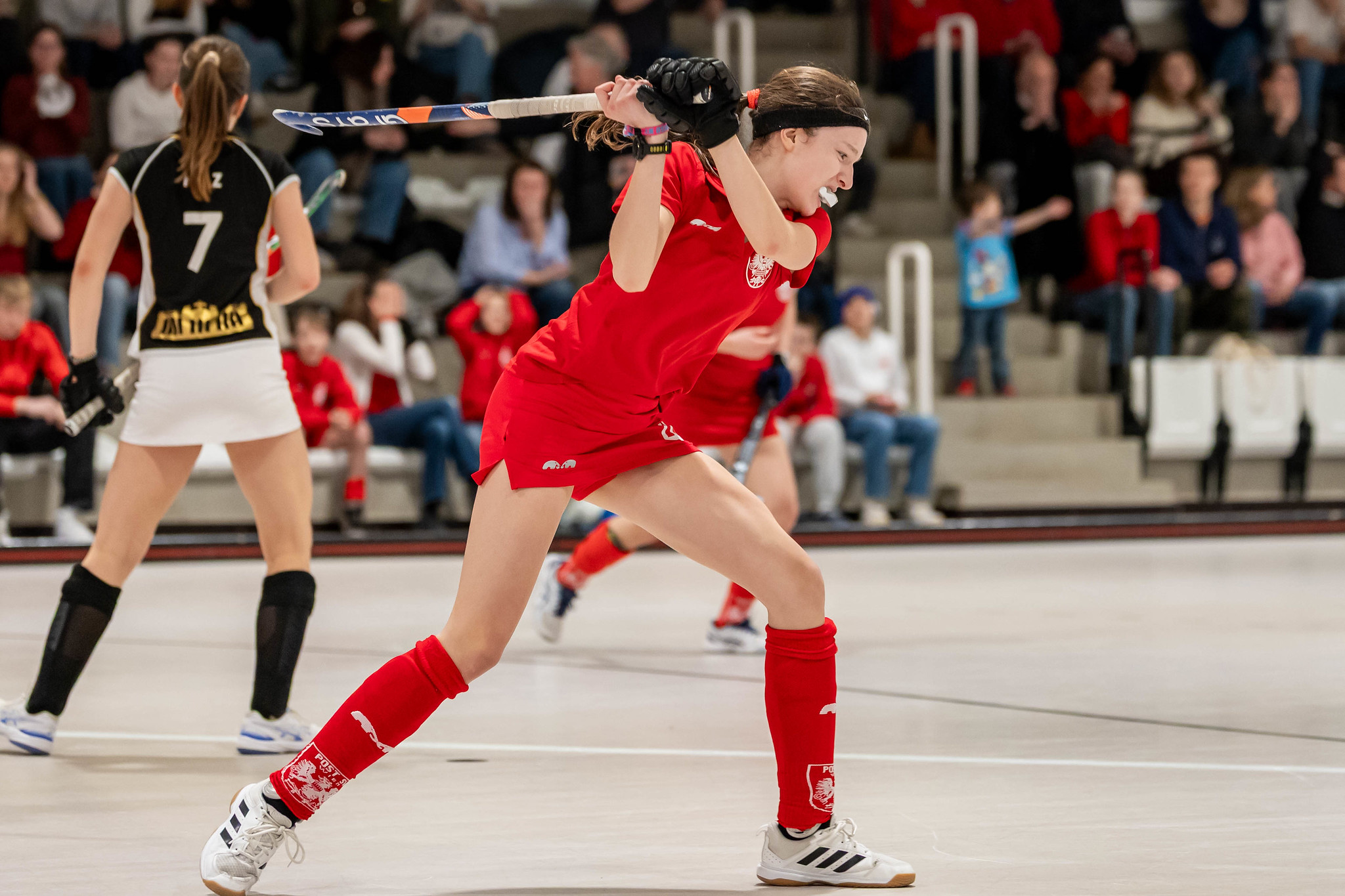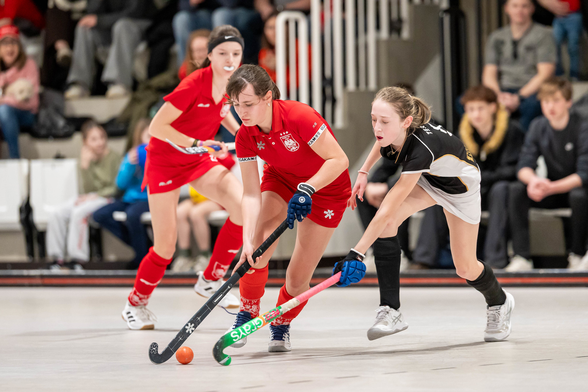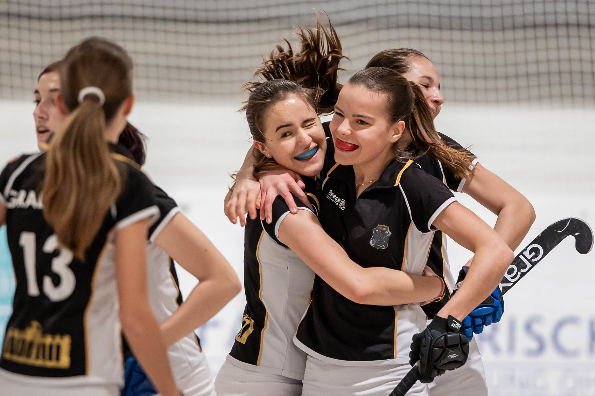SV Arminen liefert den Ball zu oft über die linke Bande direkt an Victoria Püsche ab. So kommen die Post-Mädels zu Angriffsaktionen, die letzten Endes in einer Strafecke münden. Aus dieser wird ein 7m für Post SV, aber Arminen-Torfrau Lovisa Rosengren hält den Ball. Es bleibt beim 2:2 bis es die nächste Post-Strafecke gibt, aber der Ball kann abgewehrt werden. In den letzten Minuten steht SV Arminen gehörig unter Druck. Da und dort passieren individuelle technische Fehler und so springt der Ball auch bei der nächsten Aktion vor einem Post-Torschuss hoch. Der Ball ist zwar im Tor, aber das wird richtigerweise von den Schiedsrichtern nicht gegeben.