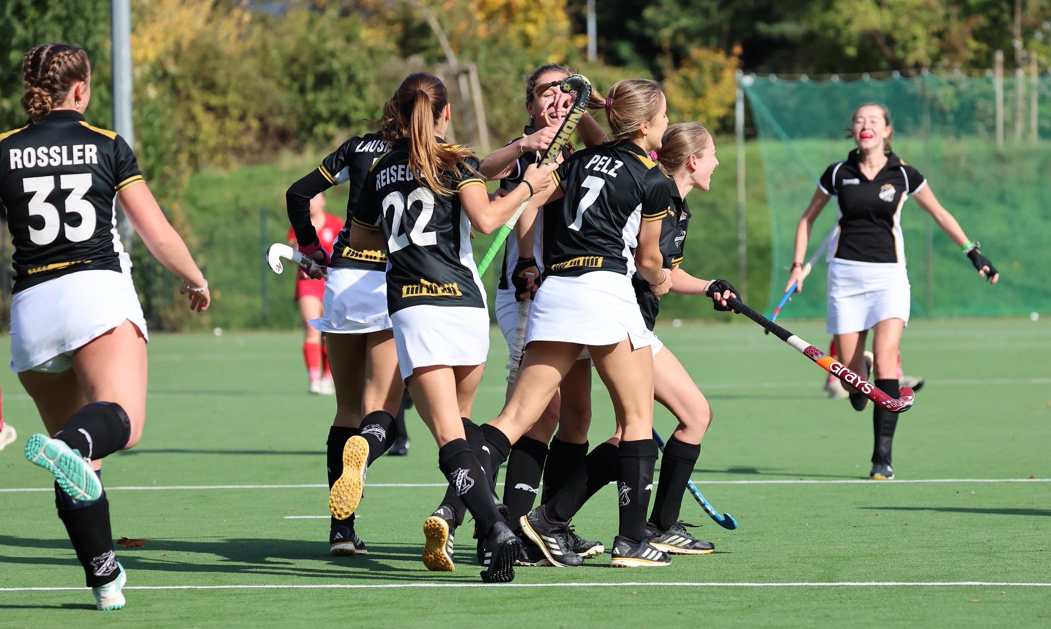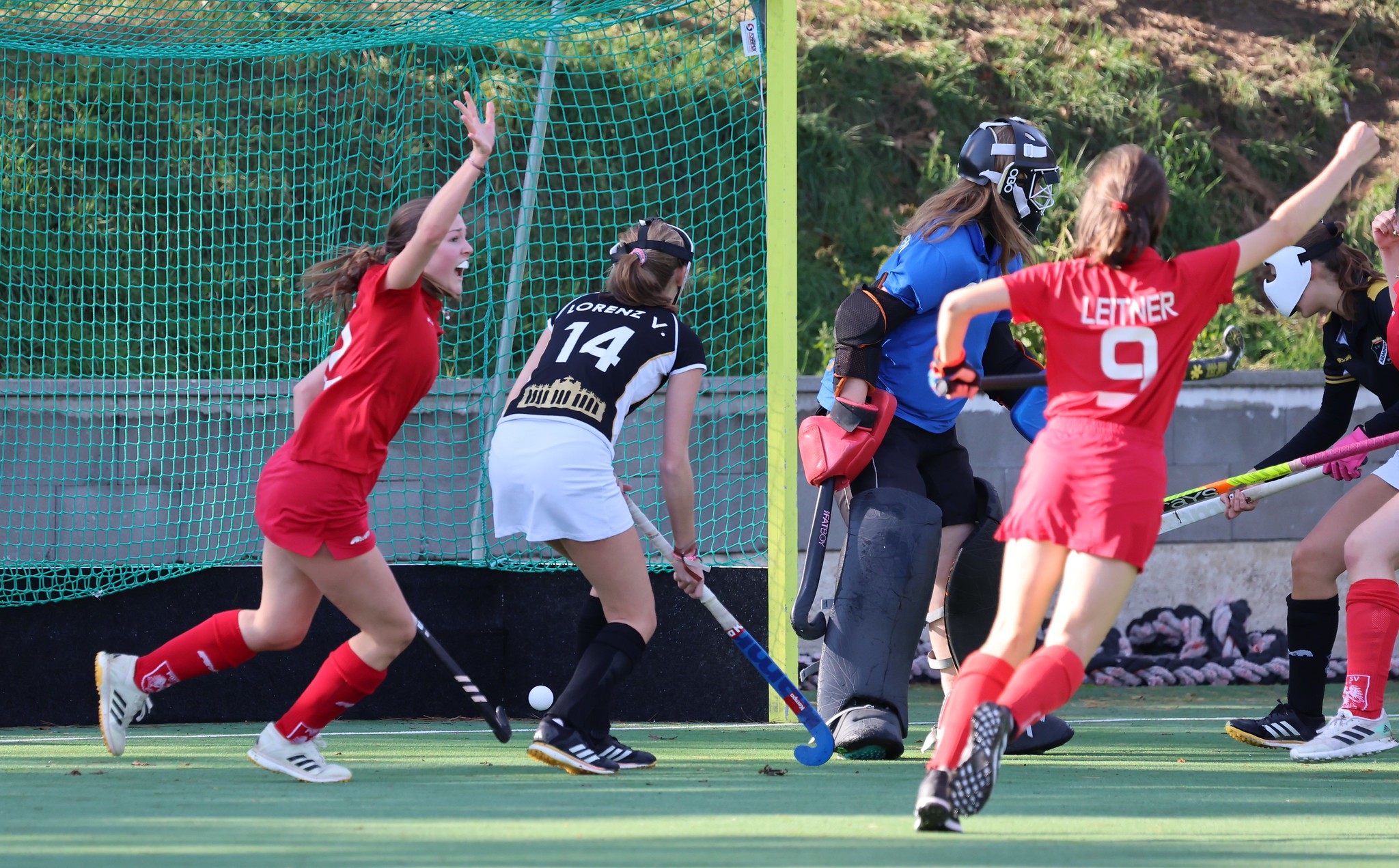 Sieben Minuten vor dem Ende Strafecke für Post SV. Johanna Enzelberger schlenzt den Ball direkt auf die Torfrau und irgendwie landet der Ball im Tor. Post SV führt 2:1.