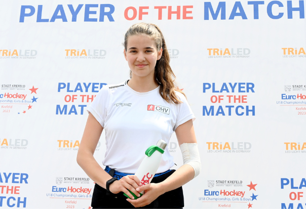 Und sie starten nach Anpfiff mit vollem Tempo und erspielen sich eine Strafecke nach der anderen. Der Torerfolg bleibt aber aus. Dies ist vor allem einer fantastischen Abwehrleistung rund um Elena Lendl zu verdanken. An ihr beißen sich die niederländischen Mädels einfach die Zähne aus. Sie schaffen es bei 10 Ecken nicht, den Abwehrriegel zu knacken. Elena Lendl wird aufgrund dieser großartigen Leistung, mit nur 15 Minuten Spielzeit, zum "Player of the Match" gekürt. Die Österreicherinnen liefern einen tollen Abwehrkampf, können den Spielstand halten und verhindern, dass Niederlande das Halbfinale erreicht.
