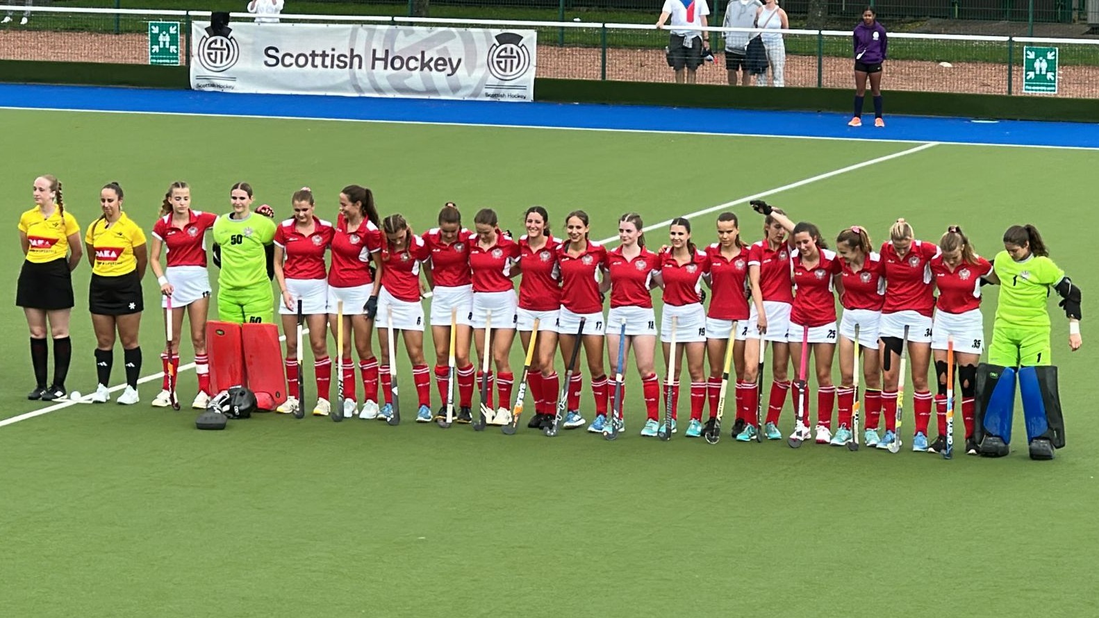 Eine umstrittene Strafecke bringt in der 37. Minute die 2:0-Führung für Schottland. Sie spielen dieses Mal eine Variante zum Stecher und die gelingt. Österreich bemüht sich redlich, dringt aber nicht in die gefährlichen Zonen vor, die für Tore sorgen könnten. Hebebälle sind eine Variante, kommen aber nicht auf den Schläger der schnellen Stürmerinnen.