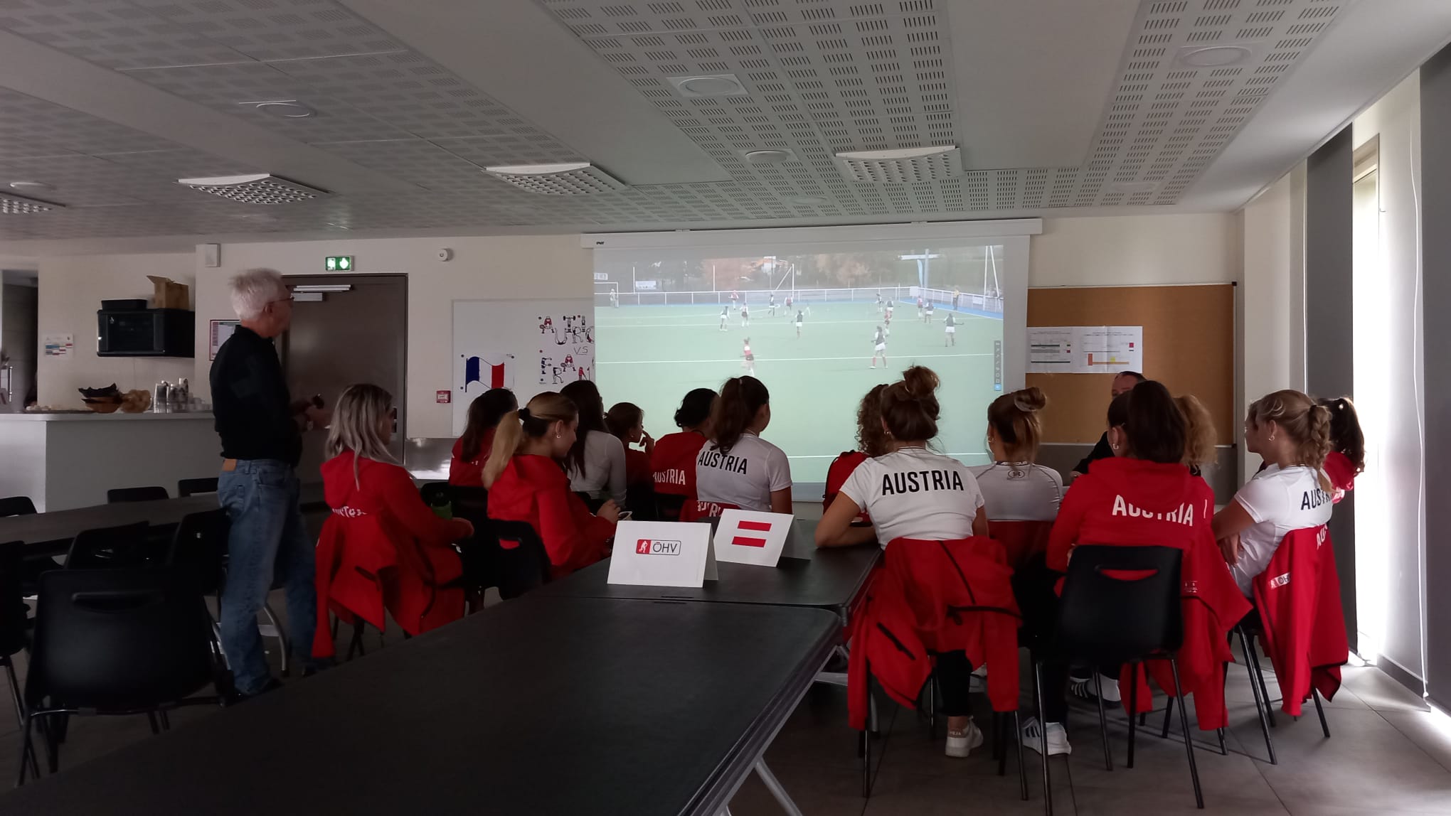 In der 20. Minute geht Frankreich durch eine Eckenkombination 1:0 in Führung. Mit diesem Spielstand geht es in die Halbzeit. Wie verwandelt zeigt sich die österreichische Mannschaft nach dem Seitenwechsel. Sie erzeugen unglaublich viel Druck, sind voller Energie und Tatendrang.