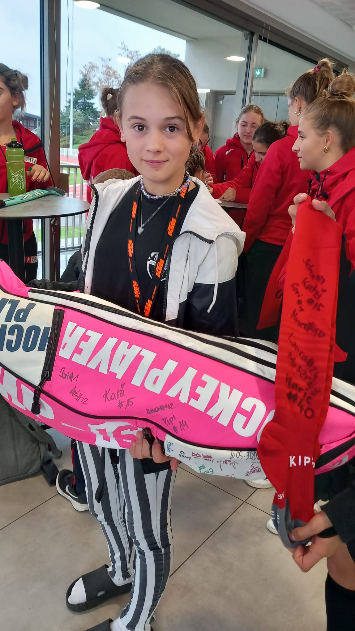 Sehr bemüht sind die Veranstalter dieser drei Länderspiele - der Hockey Club Barentin. Heute wurden im Clubhaus Barentin Autorgrammstunden für die französischen und die östereichischen Juniorinnen organisiert.