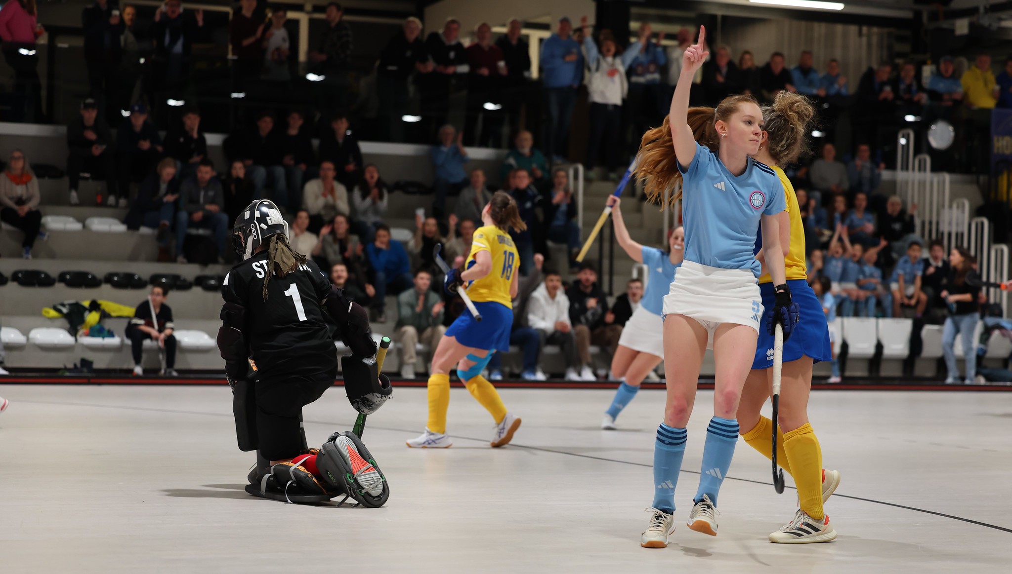Die nächste Strafecke für SV Arminen in der 15. Minute kann nur regelwidrig abgewehrt werden. Den 7m verwandelt Paula Velmans trocken und flach zum 1:0. Und zwei Minuten später ist es neuerlich Velmans, die den nächsten 7m zum 2:0 nützt.