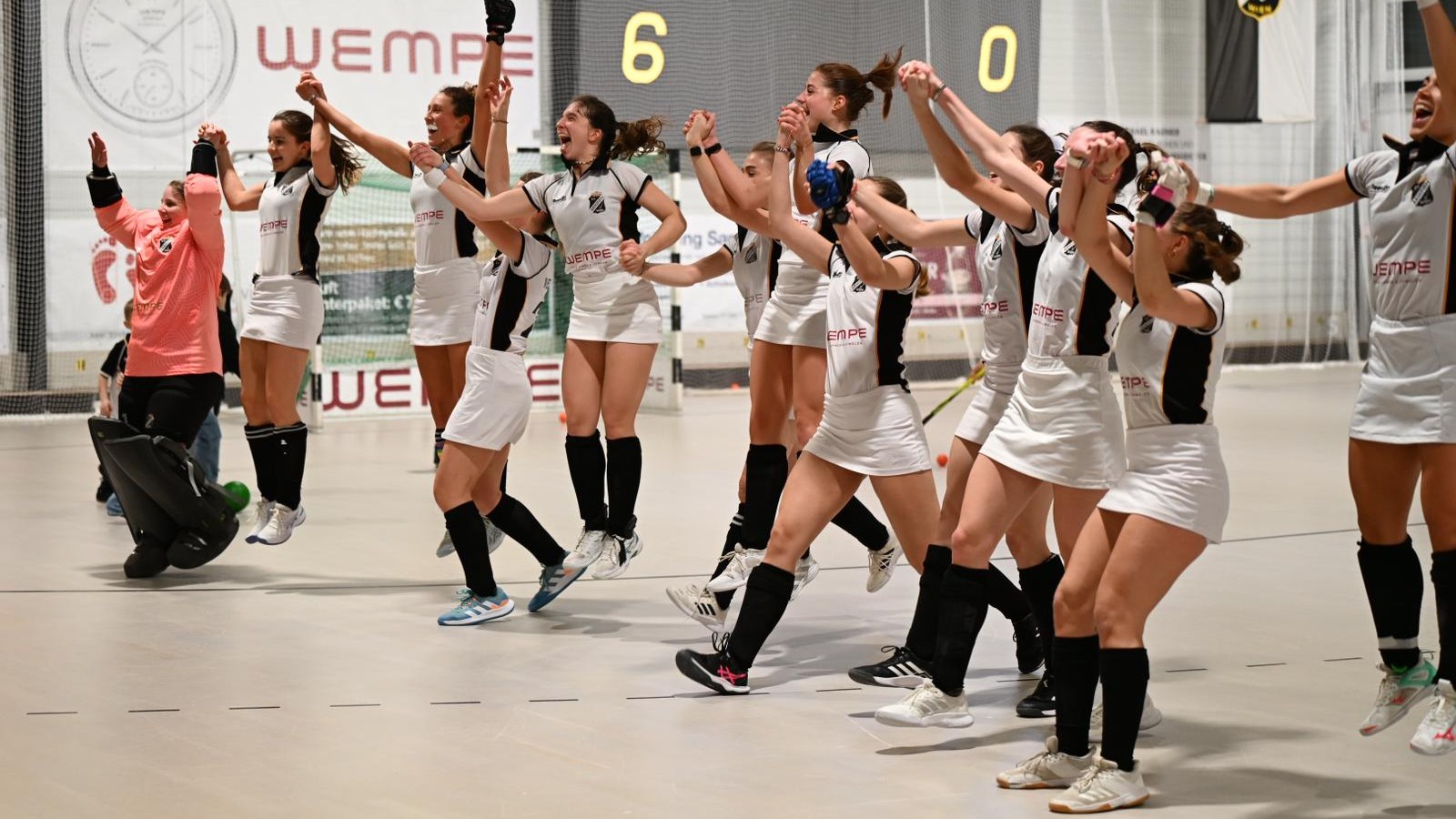 Marie Hahnenkamp zieht von der Mittellinie unaufhaltsam Richtung WAC-Tor und ihr Torschuss passt - 5:0 der neue Spielstand. Strafecke für SV Arminen und Marie Hahnenkamp setzt den Ball an die Querlatte. SV Arminen wirkt physisch stärker und HDI-WAC hat Mühe das Tempo mitzugehen.