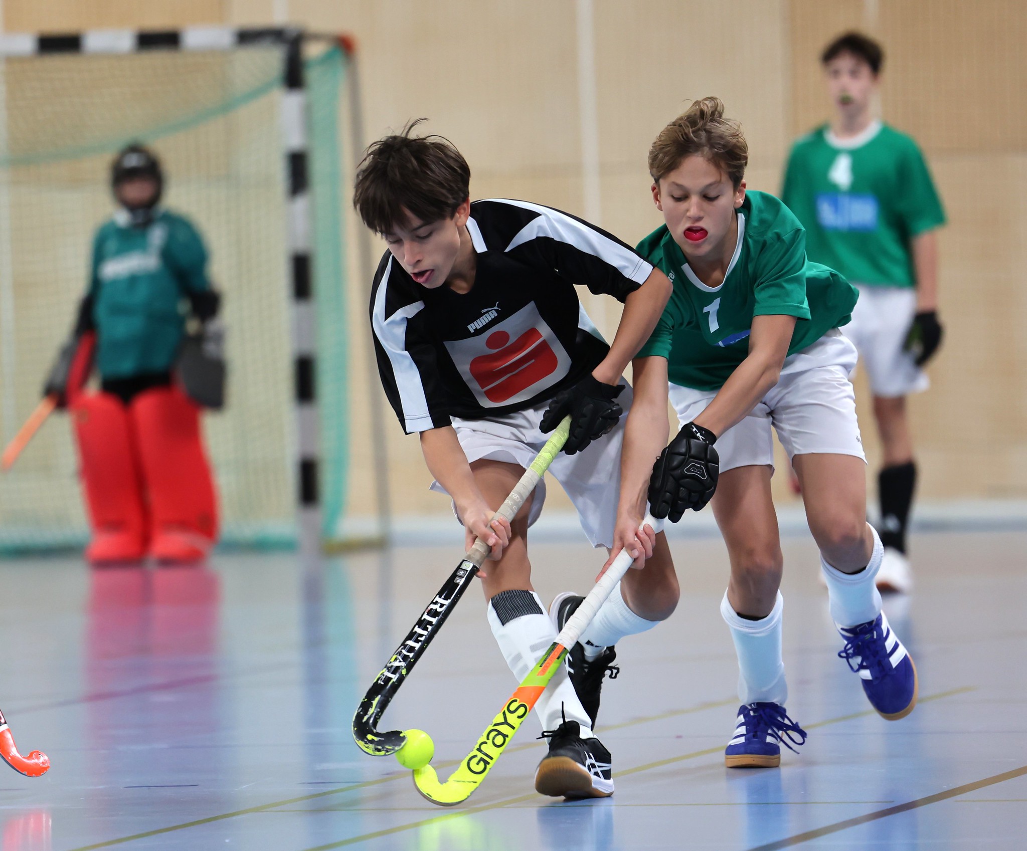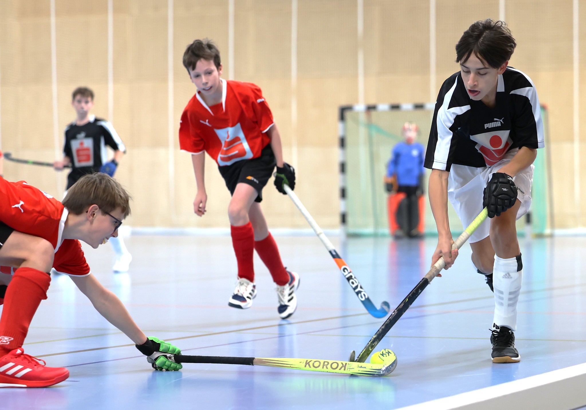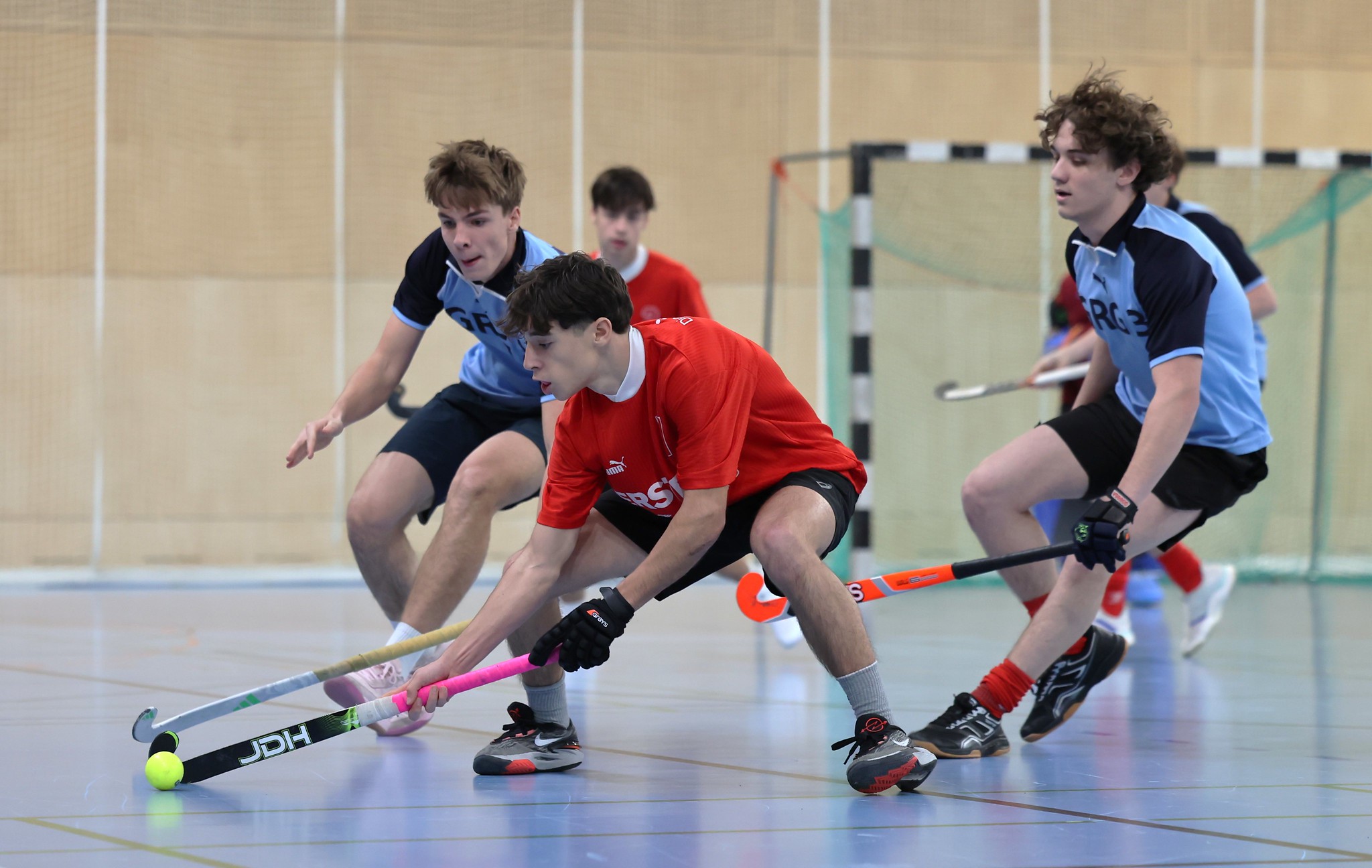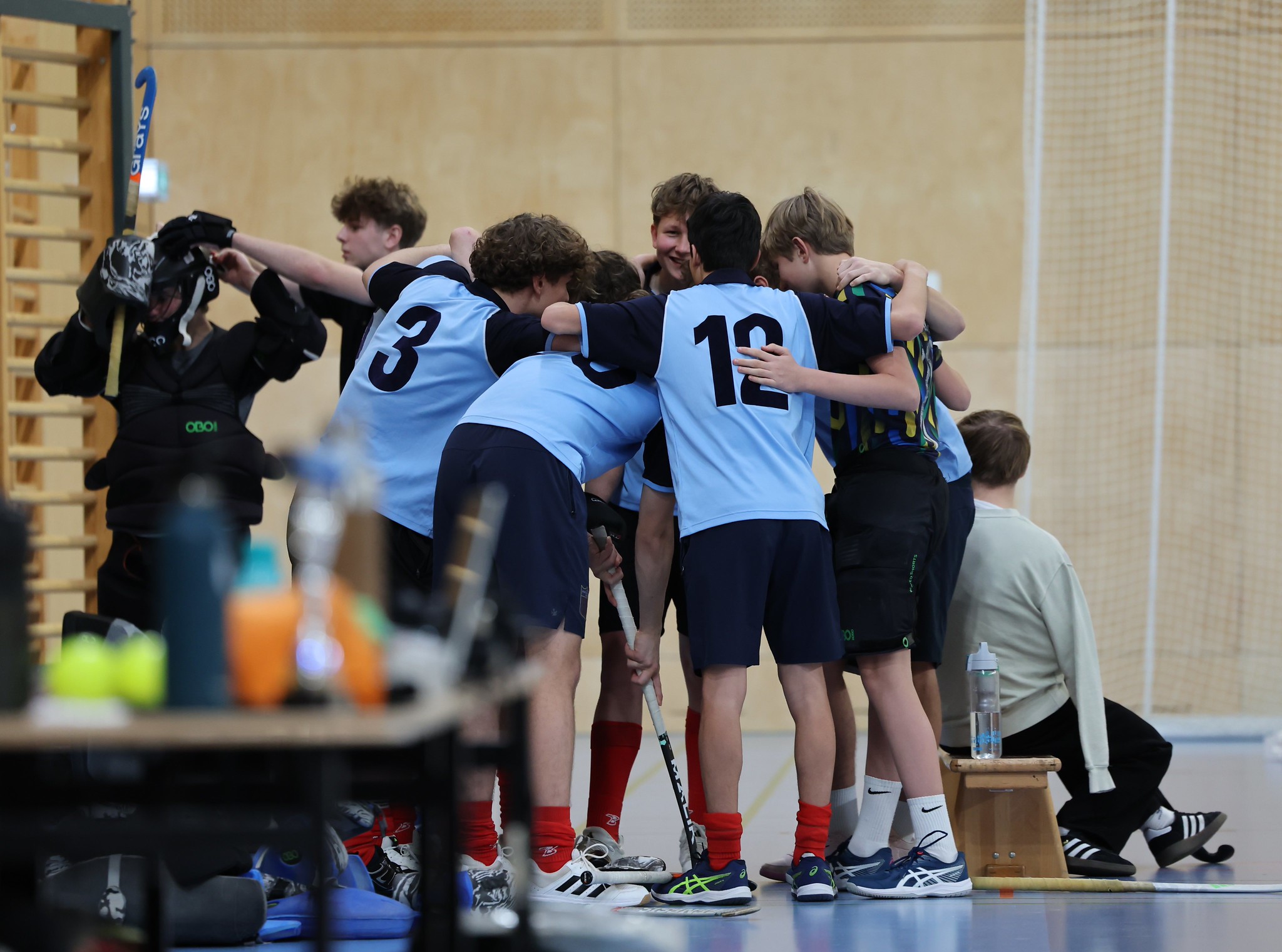 Leider fällt im Unterstufenbewerb der Burschen kurzfristig das Team des Bernoulligymnasiums aus. Der Sieger wird nun aus den vier teilnehmenden Teams ermittelt. Die Spielzeit kann durch den Ausfall von 12 auf 15 Minuten erhöht werden. Im Grunddruchgang wird schon klar, wer hier den Titel ins Visier nimmt. Die starke Mannschaft vom Albertus Magnus Gymnasium lässt nichts anbrennen, kann ohne Punkteverlust ins Finale einziehen und holt sich dort deutlich mit einem 7:1 gegen das BGRG Billrothstraße den Landesmeistertitel.