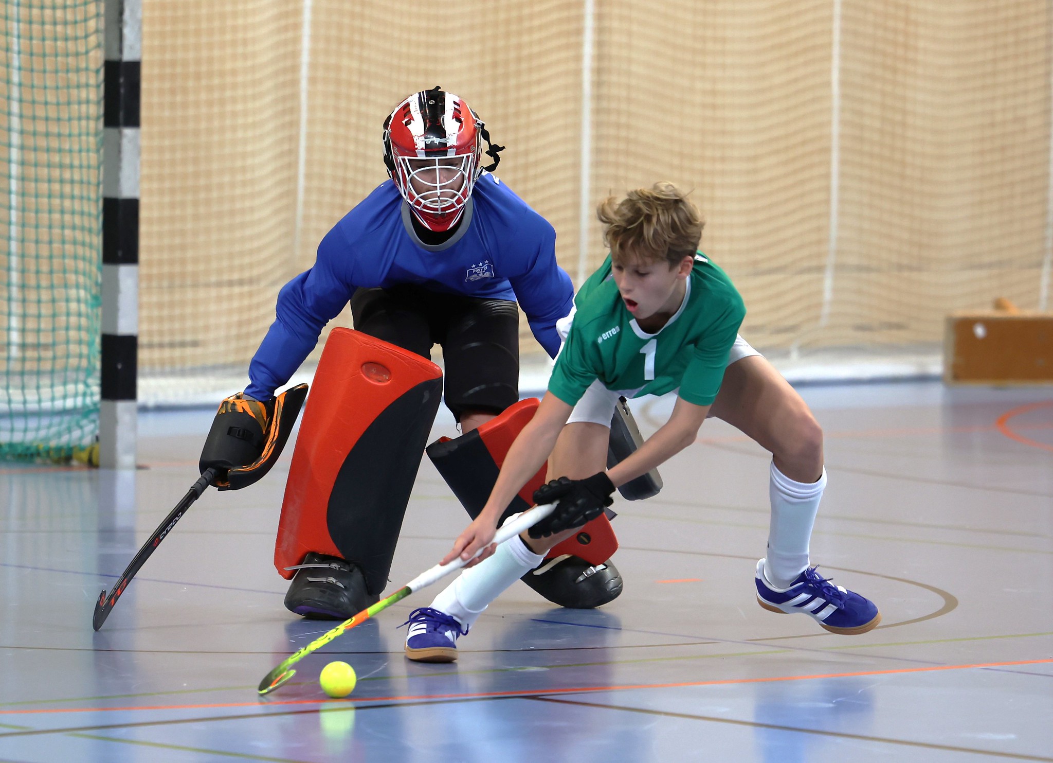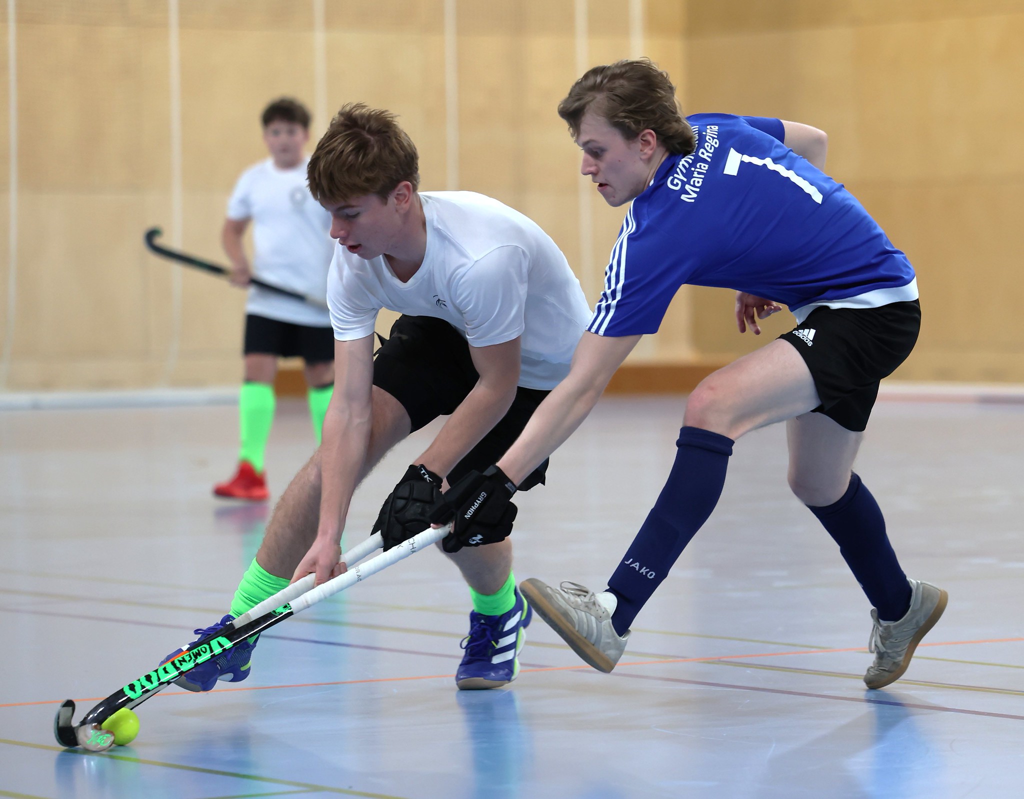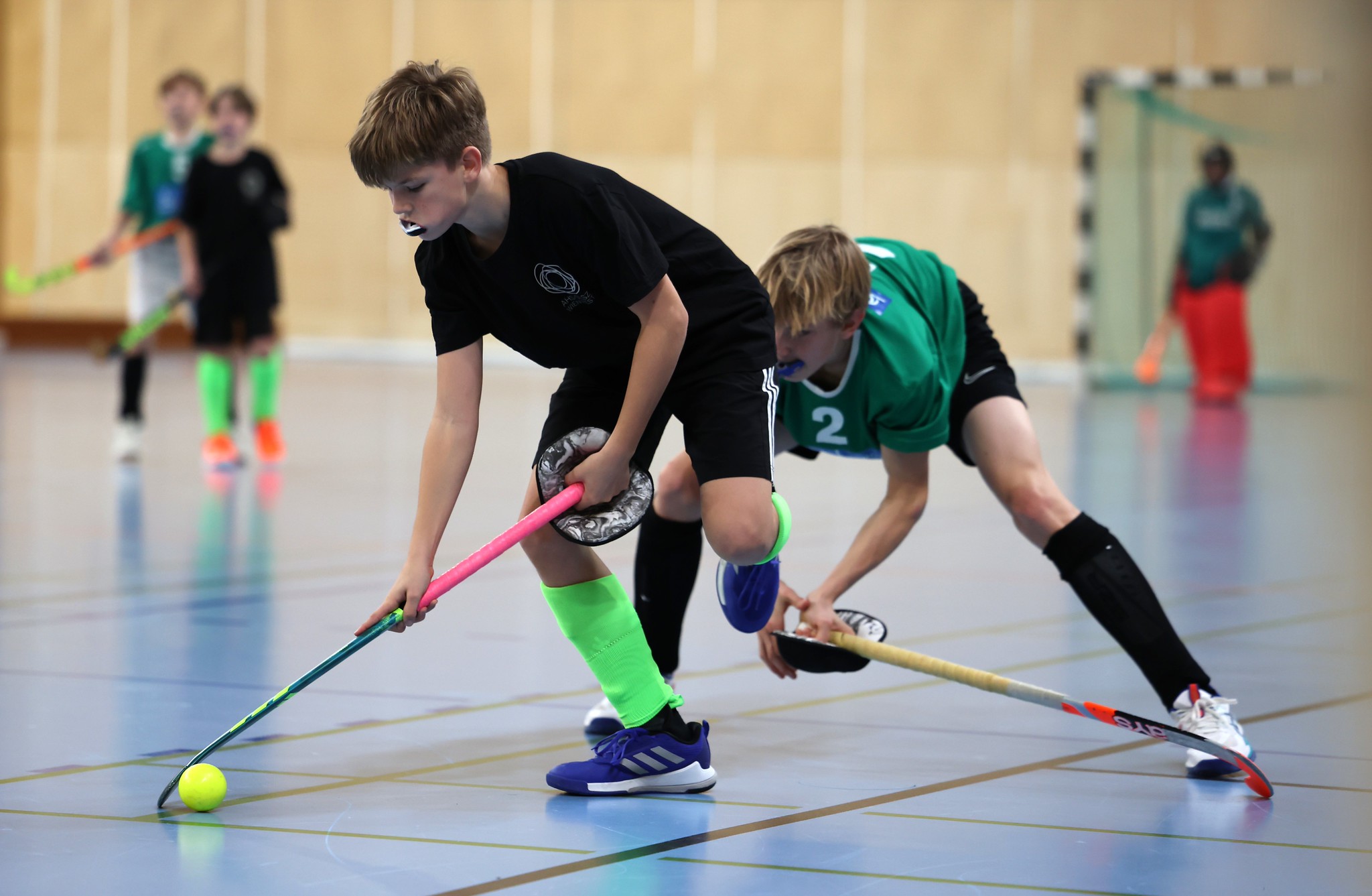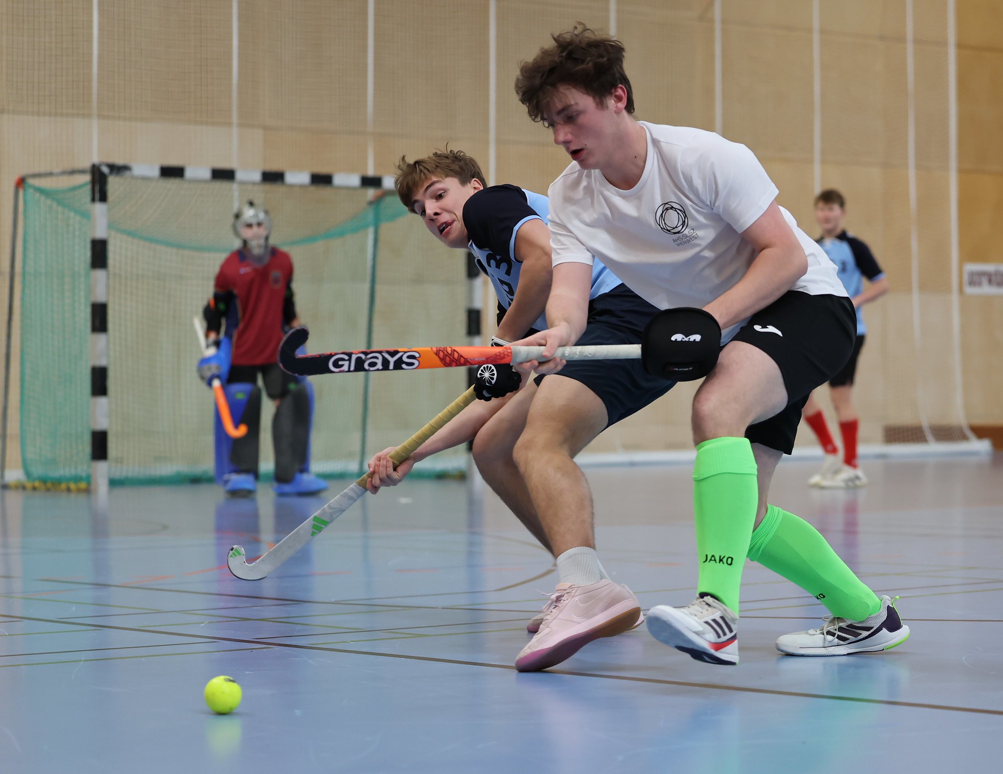 Leider fällt im Unterstufenbewerb der Burschen kurzfristig das Team des Bernoulligymnasiums aus. Der Sieger wird nun aus den vier teilnehmenden Teams ermittelt. Die Spielzeit kann durch den Ausfall von 12 auf 15 Minuten erhöht werden. Im Grunddruchgang wird schon klar, wer hier den Titel ins Visier nimmt. Die starke Mannschaft vom Albertus Magnus Gymnasium lässt nichts anbrennen, kann ohne Punkteverlust ins Finale einziehen und holt sich dort deutlich mit einem 7:1 gegen das BGRG Billrothstraße den Landesmeistertitel.