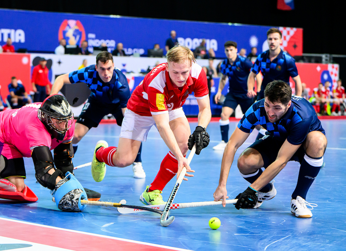 In der 17. Minute holt sich Fabian Unterkircher mit perfektem Tackling im gegnerischen Kreis den Ball und seinen Querpass auf Fülöp Losonci kann dieser ohne Mühe im Tor unterbringen. Aber zwei Minuten später holen sich die Kroaten ihre erste Strafecke. Mateusz Szymczyk reagiert gut und verhindert den Ausgleich. Im Gegenzug hat Fülöp Losonci ein weiteres Tor am Schläger, aber Sekunden vor der Halbzeitpause zieht der Ball knapp am Tor vorbei.