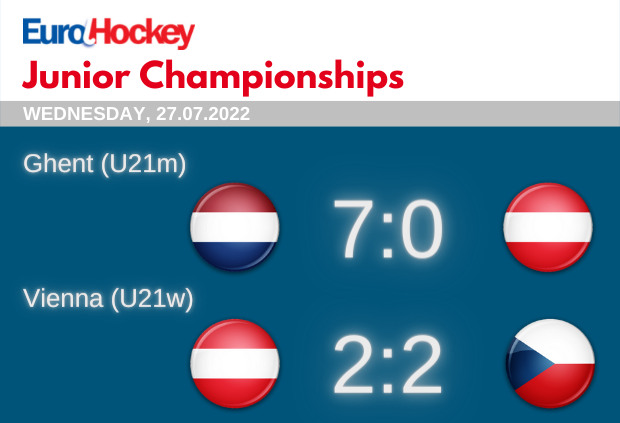 Österreichs U21 männlich muss sich nach starker Defensivleistung eine 7:0-Nierlage gegen Niederlande einstecken. Die U21w behält trotz einem 2:2 gegen Tschechien die Tabellenführung.
